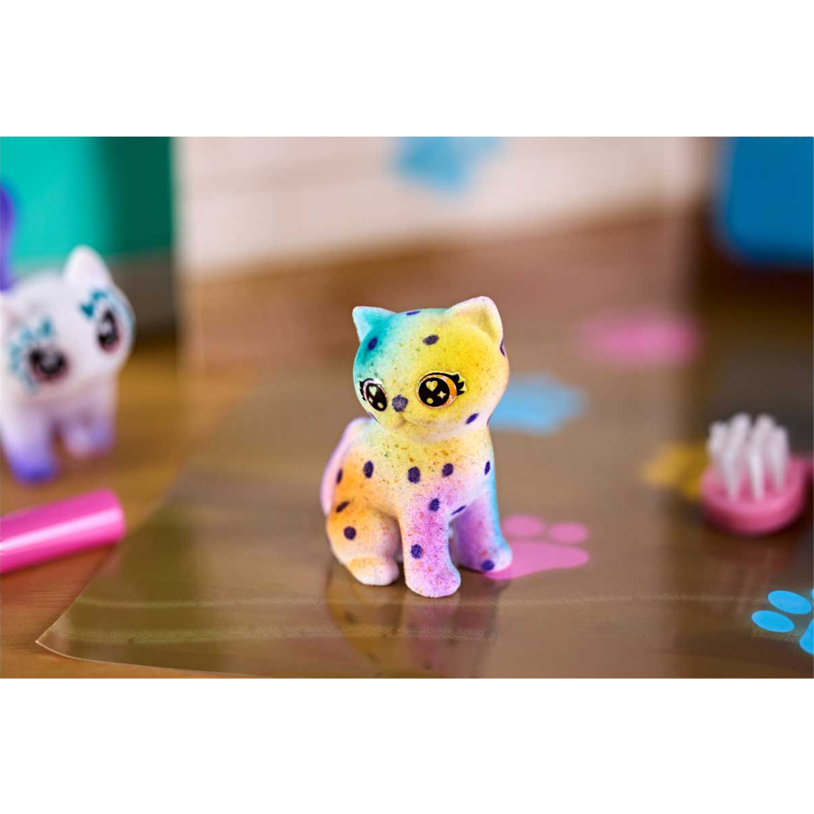 This set features 4 Pets, 1 Airbrush Sprayer Unit, 8 Markers, 1 Brush, 1 Backdrop, and a Mat.