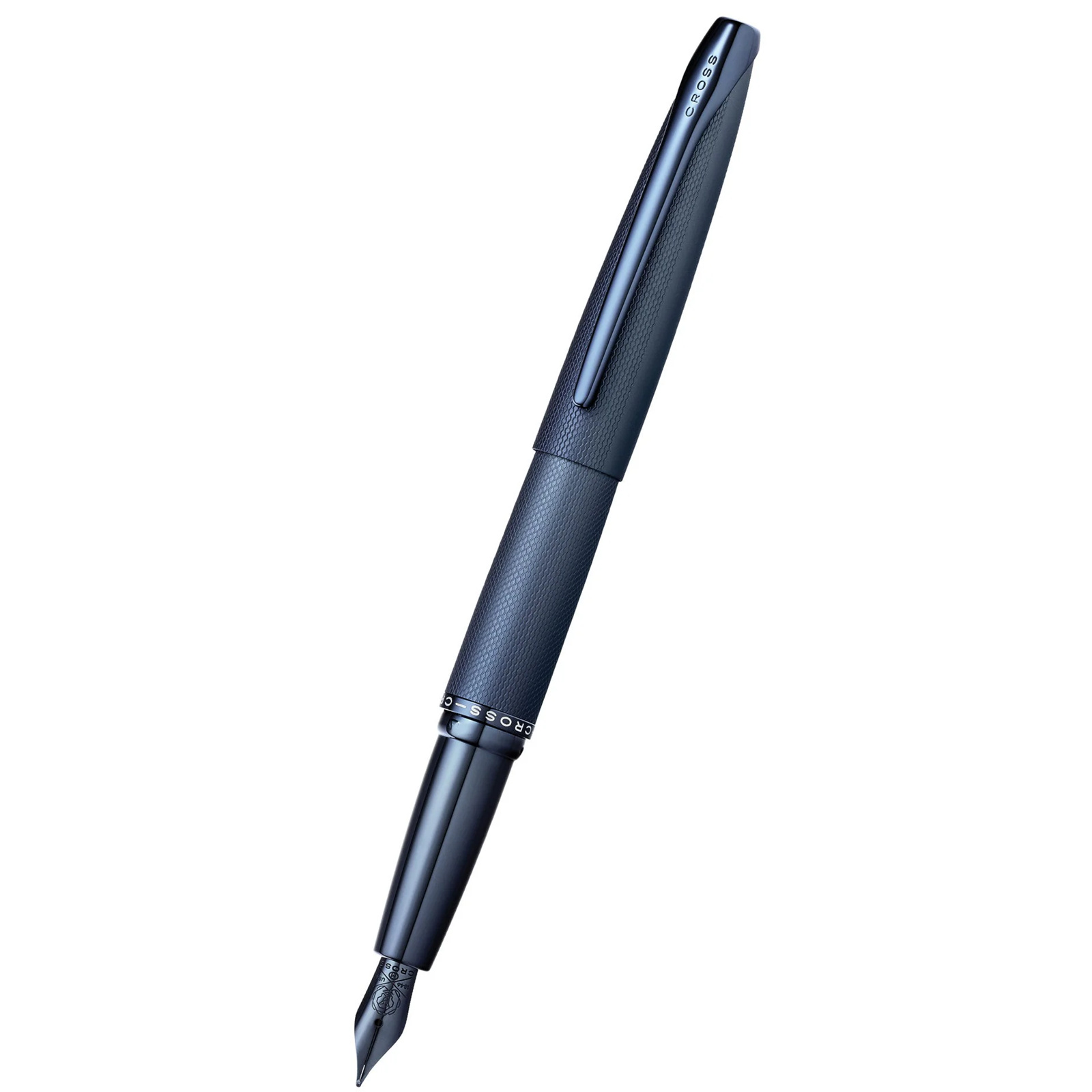 The Cross ATX Etched Diamond Pattern Dark Blue Fine Nib Fountain Pen exemplifies a bold approach to modern writing instruments. Designed to capture attention, the ATX pen sets itself apart with its cutting-edge aesthetics and commitment to quality. Its carefully tapered, balanced profile not only offers visual appeal but is tailored to provide superior ergonomics, ensuring both comfort and style during extended writing sessions.