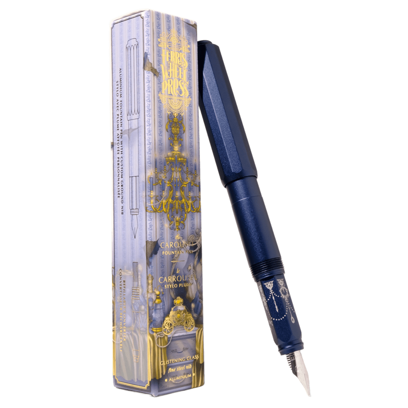 The Glistening Glass Limited Edition Carousel Fountain Pen continues the story of the FerriTales Glistening Glass ink with the intricately etched hand-illustrated chandeliers that glimmer under your grip. Always find the right words with magic at your fingertips. Available in limited quantities, complete your collection before the clock strikes midnight.