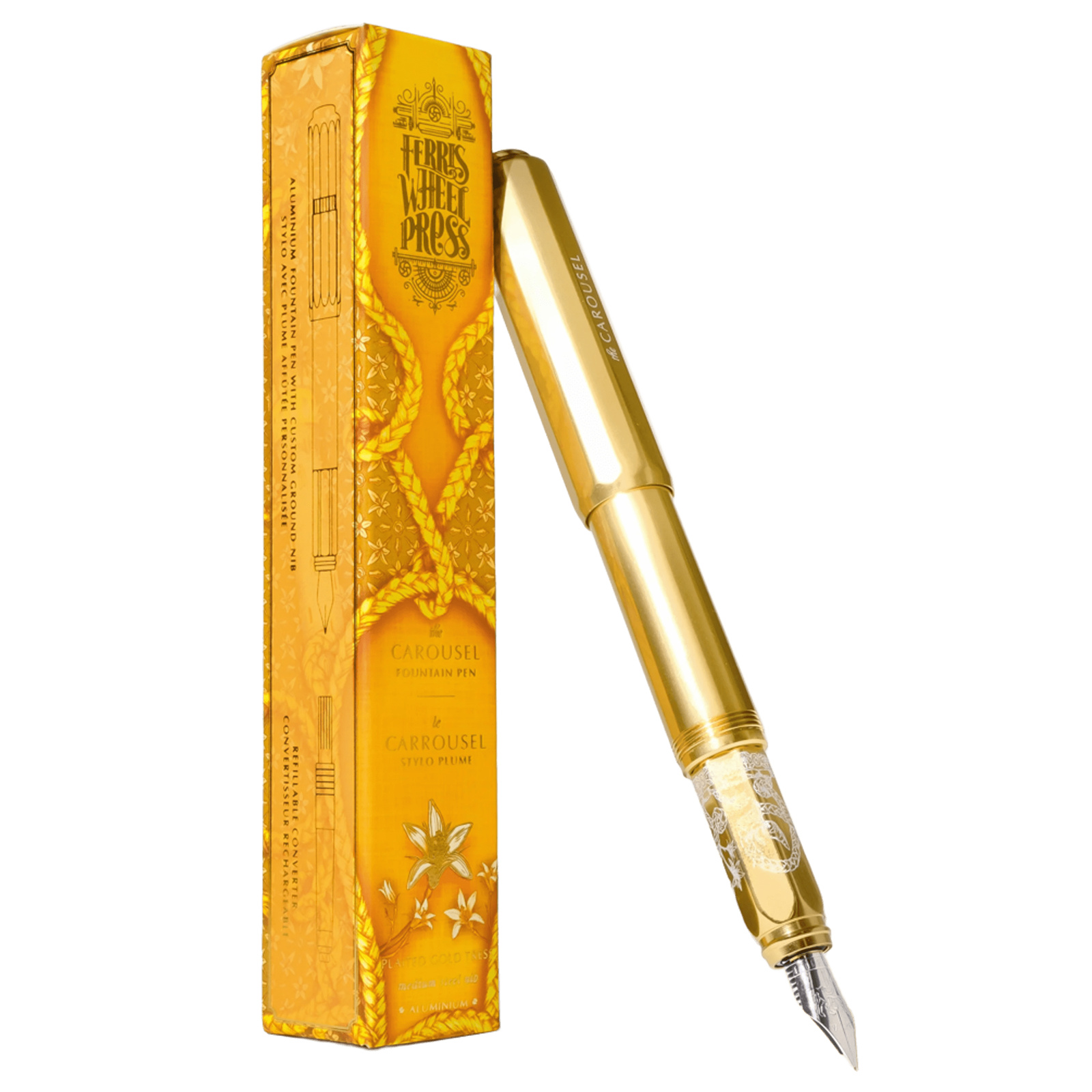 The perfect companion to your Brilliant Beanstalk FerriTales Ink, this champagne gold edition of the aluminum Carousel fountain pen is produced in a small limited batch and available only while quantities last!