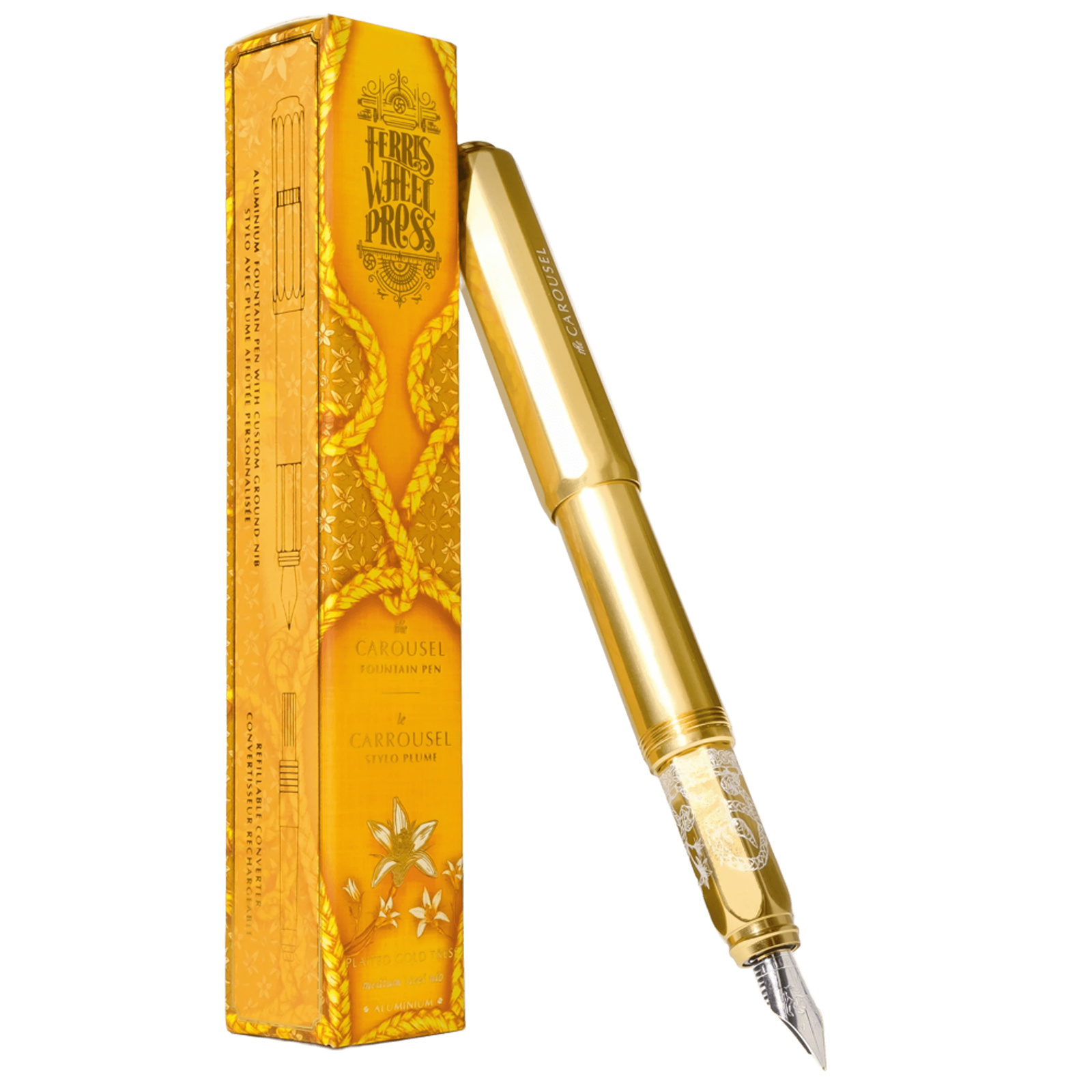 The perfect companion to your Brilliant Beanstalk FerriTales Ink, this champagne gold edition of the aluminum Carousel fountain pen is produced in a small limited batch and available only while quantities last!