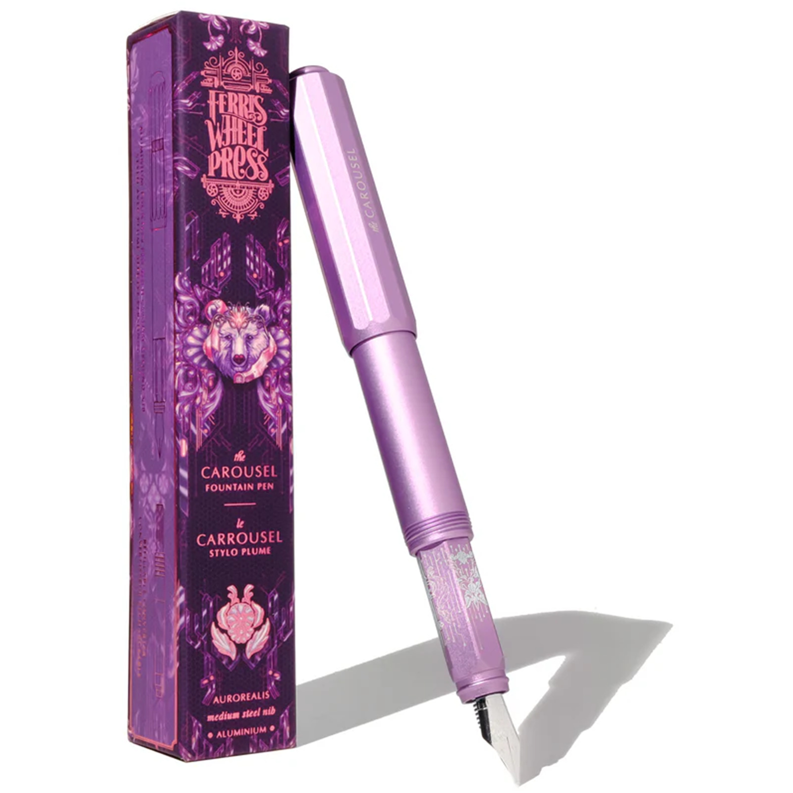 The Aurorealis Limited Edition Carousel Fountain Pen continues the story of Ferris Wheel Press's 2024 feature ink with an intricately etched grip, stepping into a world where artistry and technology unite in perfect harmony. Embrace the future of writing and art, and collect this precious limited edition before they're gone.