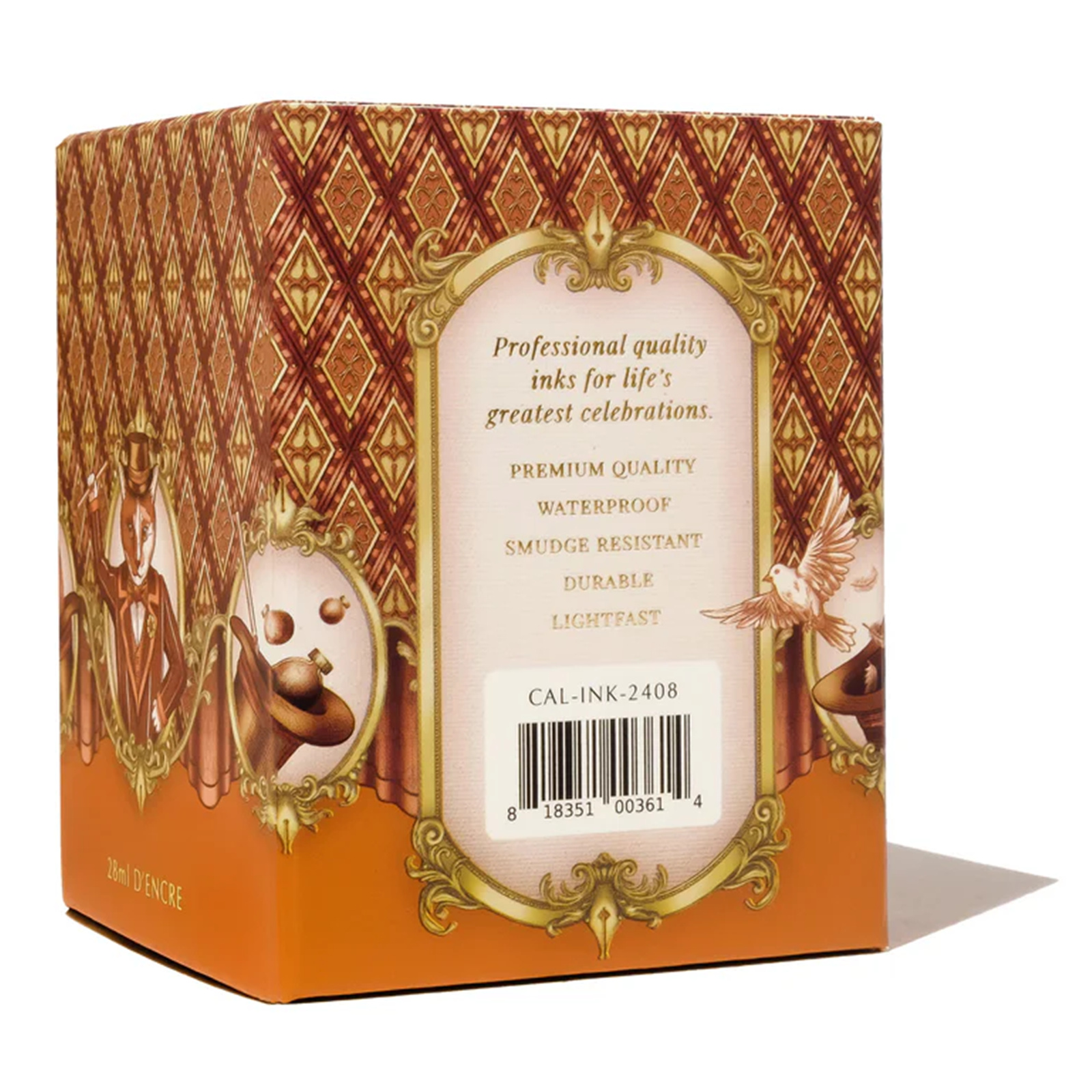 Professional calligraphy ink made for life's most memorable celebrations. Step on up into the big top and witness the most astounding show! Marvel as the Great Patchini conjures up feats of magic right before your very eyes while Pumpkin the Prankster dazzles with his juggling stunts! A show-stopping spectacle, this lively orange ink dotted with golden shimmer will surely get a standing ovation.