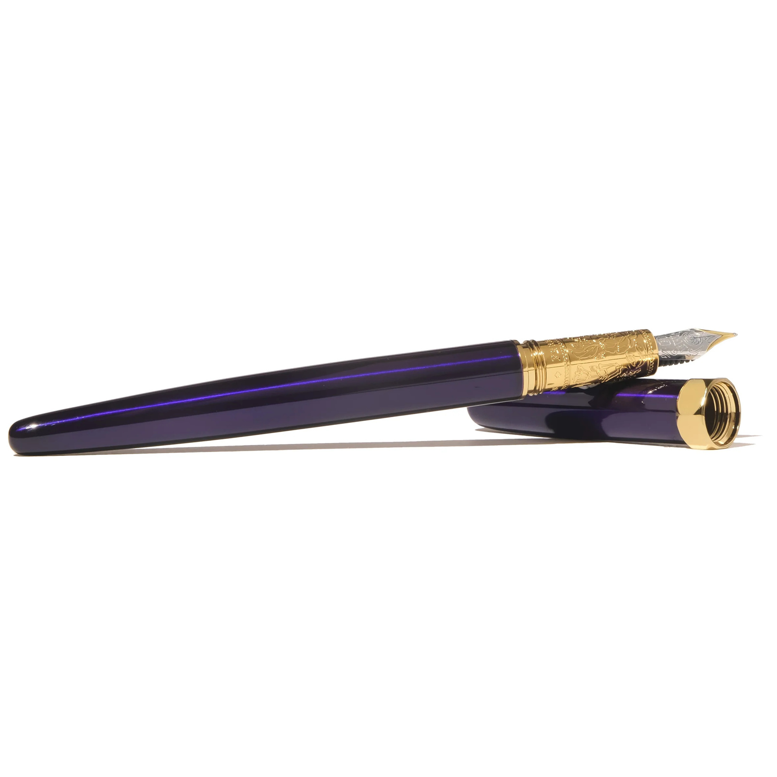 Exclusively created for the FerriTales Collection, we present an all new Bijou Fountain Pen in a luxurious deep violet Sapphire Lacquer finish, complete with the signature smooth writing two-tone No.5 nib. Admire the intricately engraved grip, which continues the story of the Moonbeam Meadows ink. Embrace a flourishing garden where fairies, sprites, and gnomes emerge to dance.