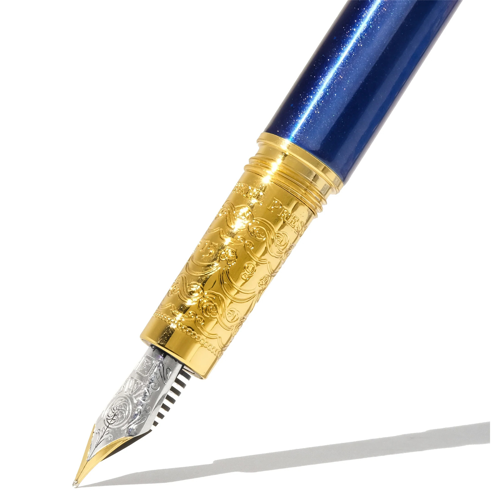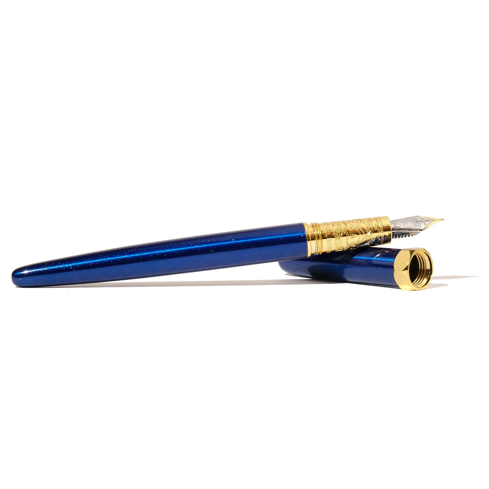 This Bijou Fountain Pen comes alive in a striking cobalt blue, enhanced by the Snowfall Lacquer finish that adds a shimmering, jewel-like depth. As light interacts with its surface, subtle variations in tone and sparkle reveal themselves, making every angle captivating.
