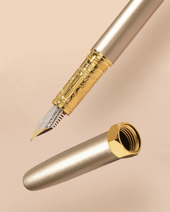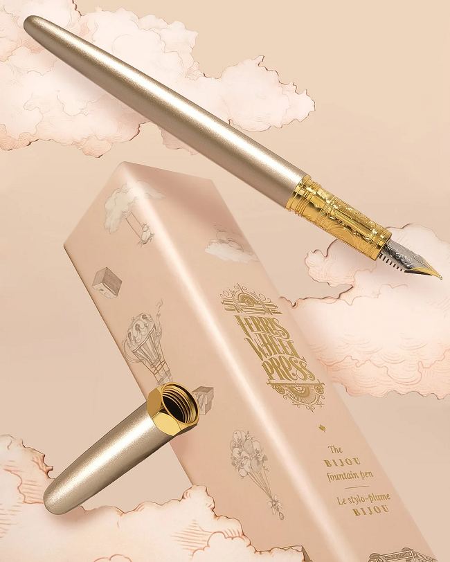 At the heart of The Bijou lies a new two-tone No. 5 steel nib; experience smoothness in every stroke. With improved machining and threading accuracy, expect a high-quality instrument that is equipped with a removable feeder unit that allows for easy maintenance. The Bijou arrives with a standard international size ink converter, ready for your favourite Ferris Wheel Press ink and next stroke of brilliance.