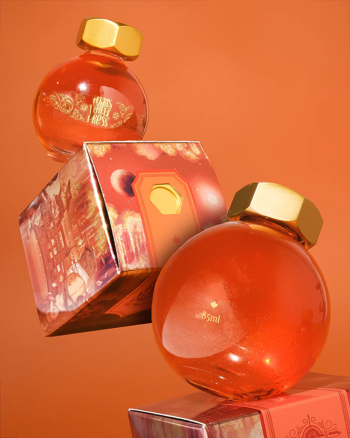 Captured in a 85ml glass globe that fits most fountain pens, this high quality, richly saturated pen ink is the most cherished collection yet. Explore a world of premium, dazzling shimmers, enchanting tonal combinations, and captivating sheens to add to your treasured chest of stationery.