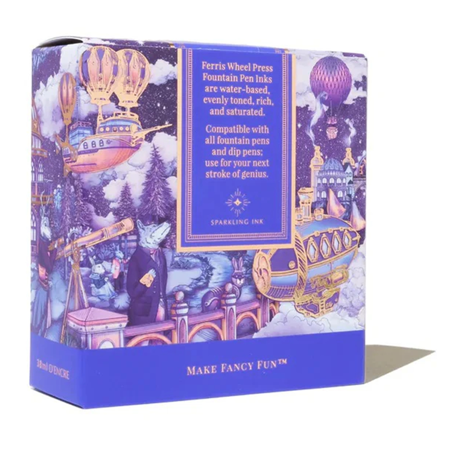 Presented in a beautifully illustrated box inspired by the wonders of the night sky, the packaging mirrors the cosmic story within. Rich blues and rose-gold accents evoke drifting airships and glowing constellations, making this ink a striking, gift-ready piece for fountain pen enthusiasts, collectors, and lovers of finely crafted stationery.