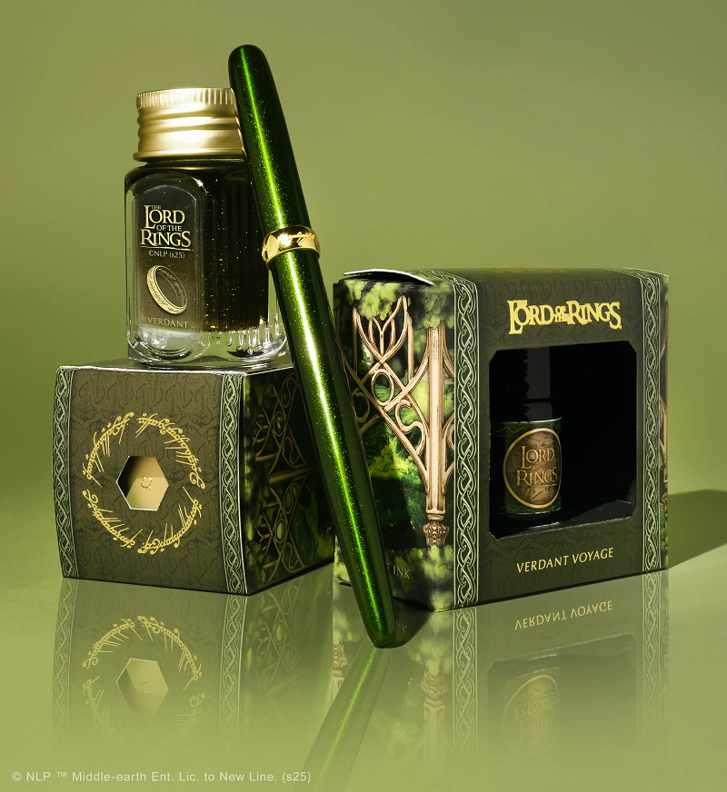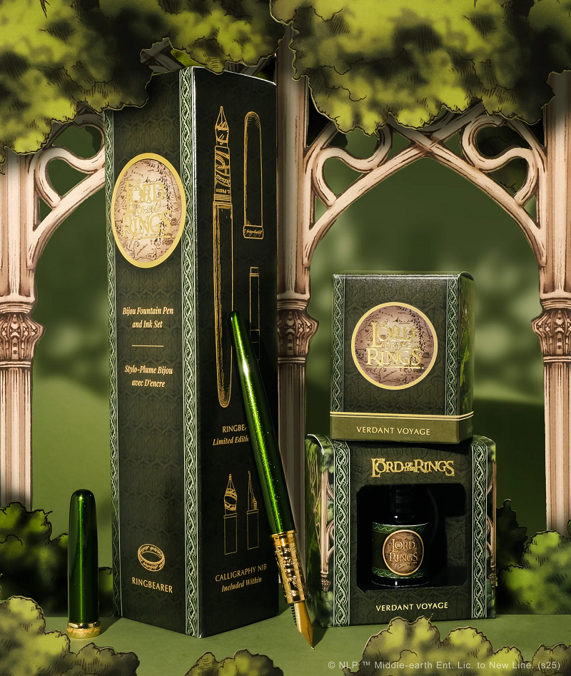 Celebrate The Fellowship of The Ring™. Journey through sunlit glades and moss-laden woods, as Verdant Voyage invites you to write with a heart as brave as those who dared to venture beyond the comforts of the Shire.™