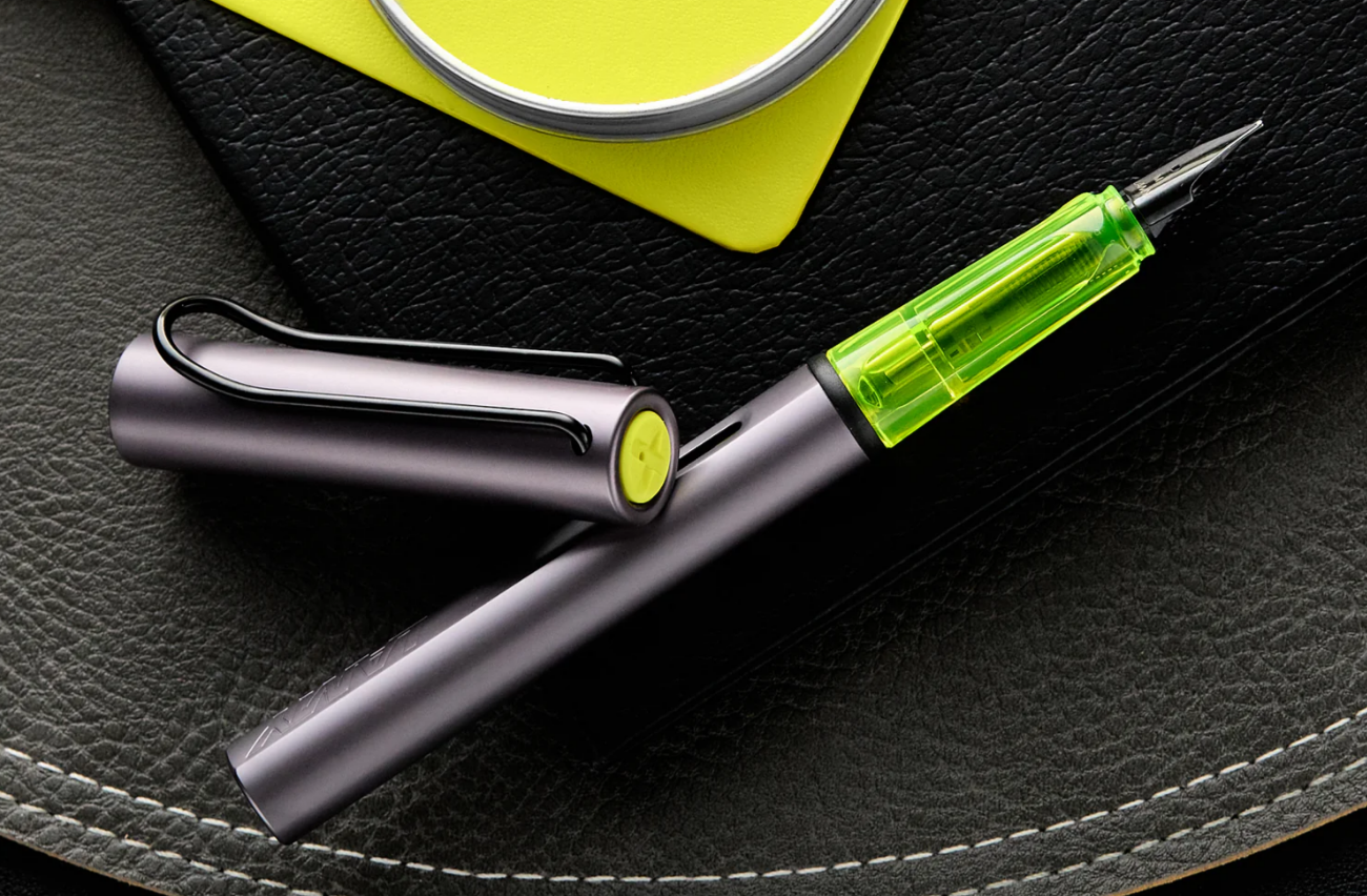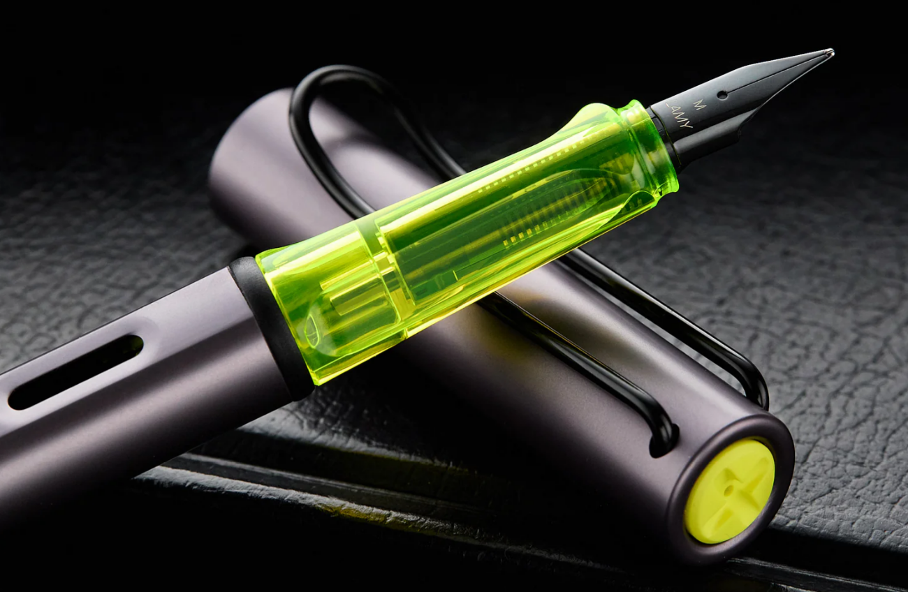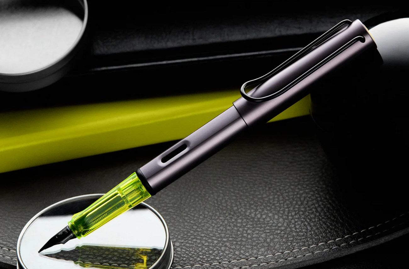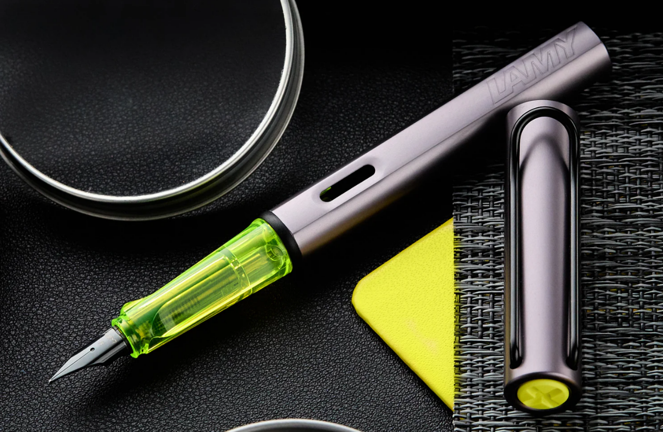 Enhancing its collectability, the Lamy Al-star is also available in a limited edition metallic aubergine. This special version features an anodised aluminium body and cap in a rich, metallic violet hue complemented by a translucent yellow grip. These bold colour choices not only reinforce its modern aesthetic but also set the pen apart as a unique addition to any writing instrument collection.