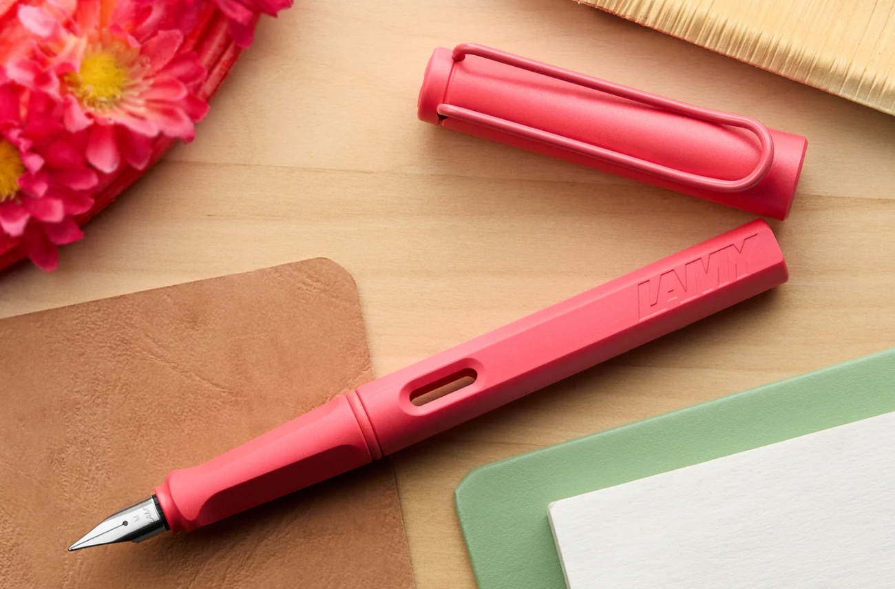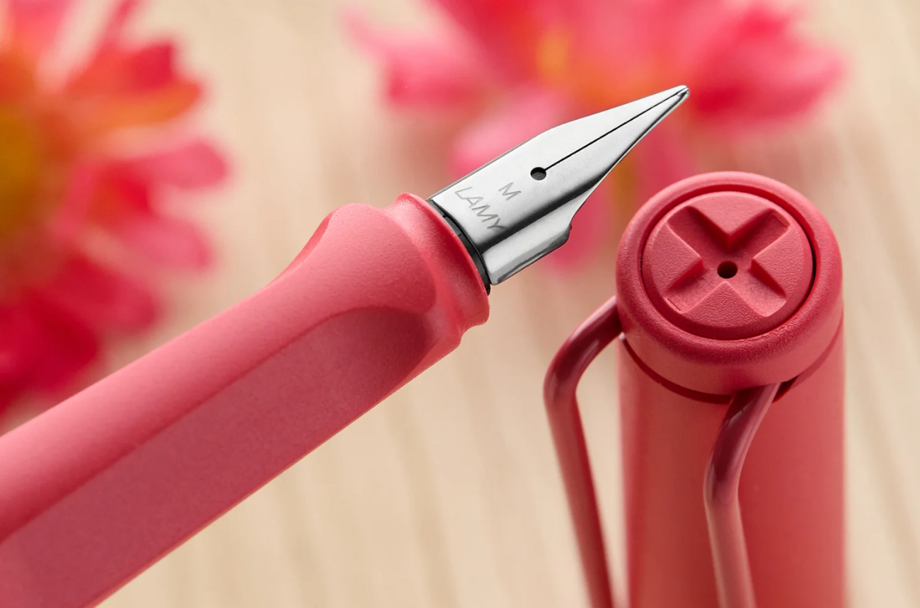 The Lamy Safari LE Fountain Pen in Sunset Coral stands as a symbol of timeless design and modern appeal. Introduced as part of the renowned Safari collection, this pen captures attention with its minimalist aesthetic and universal charm. Its harmonious proportions and sleek silhouette not only make it a favorite among young writers but also appeal to design enthusiasts worldwide.