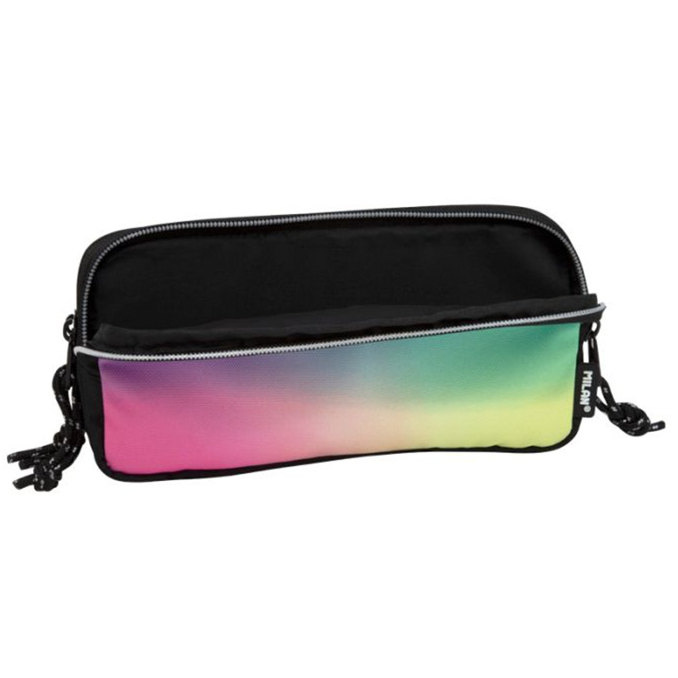 Milan Pencil Case Rectangular 3-Zip Sunset Series Black