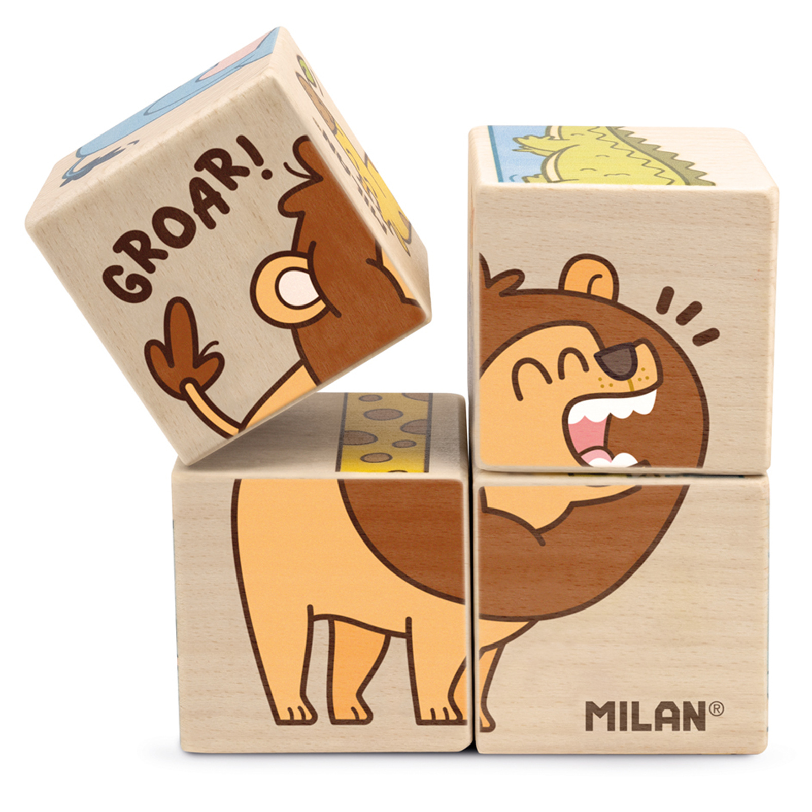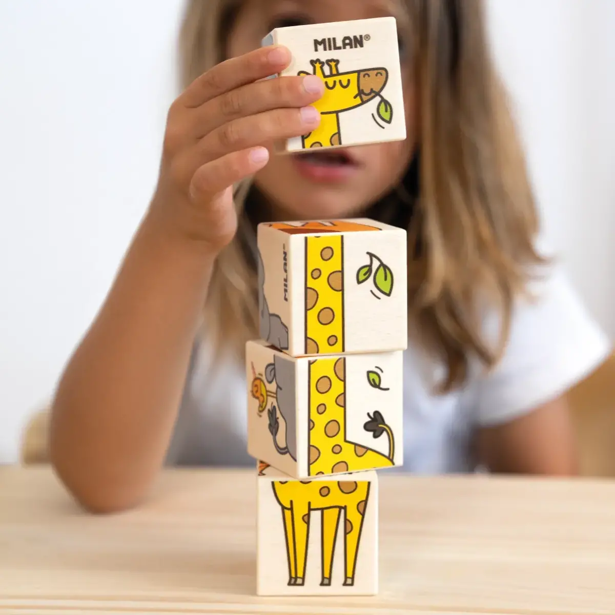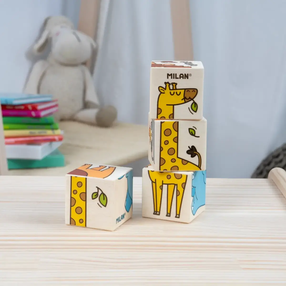 Milan 660530 Milan Wooden Educational Wild Safari Cube Puzzle