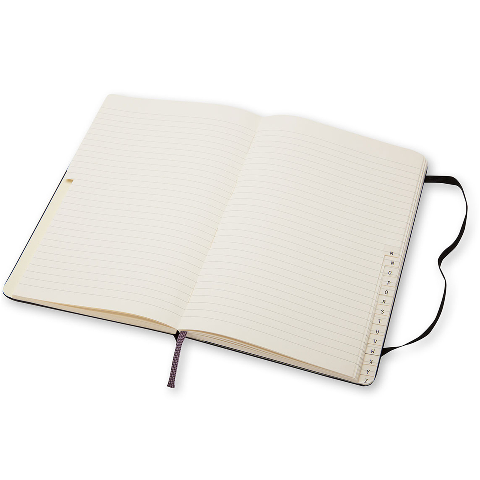 The Moleskine Address Book was inspired by the classic Moleskine Ruled Notebook. This address book is perfect for keeping track of all of your important contacts with its ruled pages. It has laminated A-Z alphabetical tabs, for an easy and flexible way to organise your information. Every Moleskine product is thread bound and has a cardboard bound cover with rounded corners, acid-free paper, a bookmark, an elastic closure and an expandable inner pocket that contains the Moleskine history.
