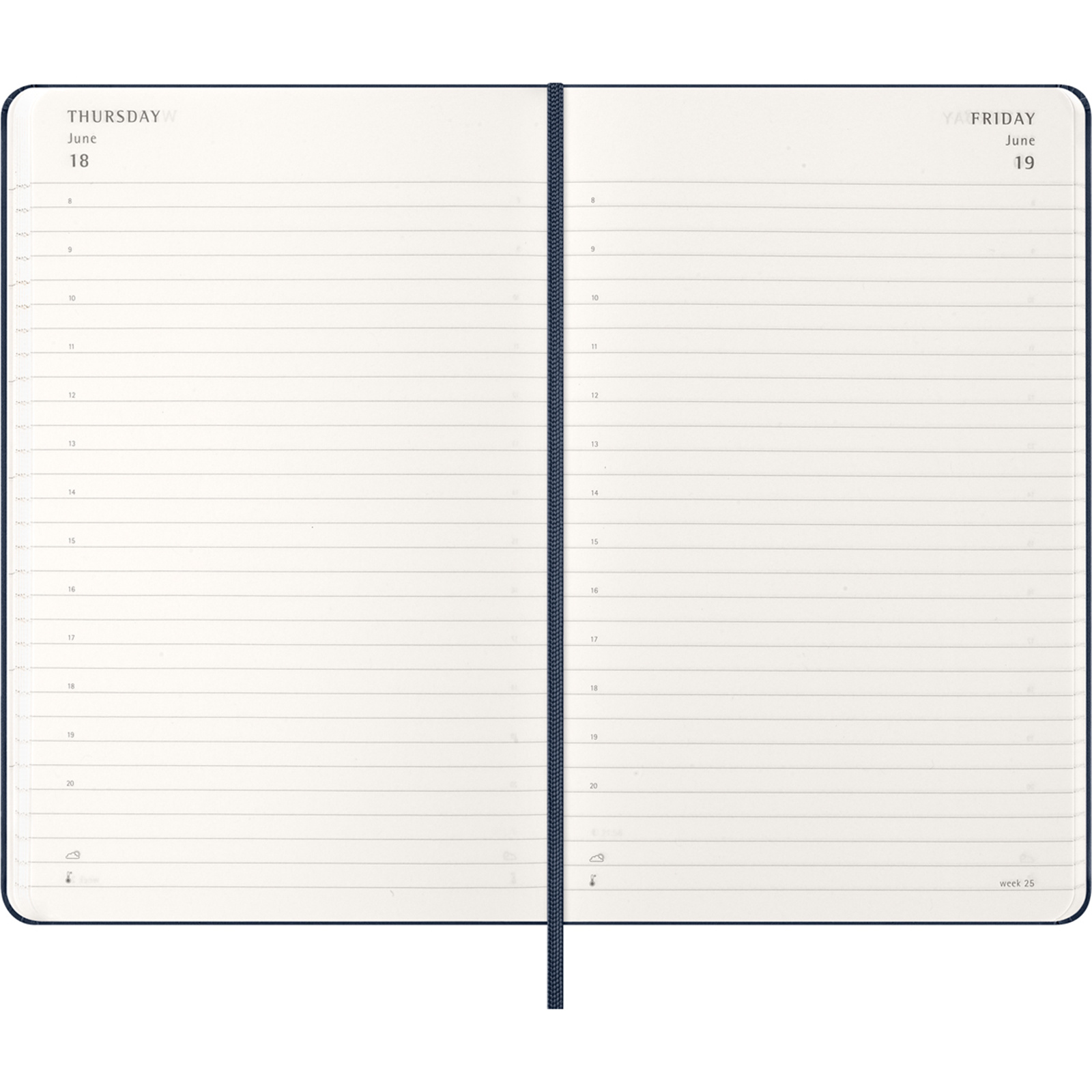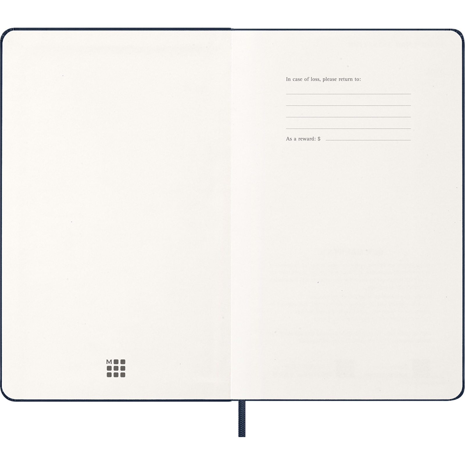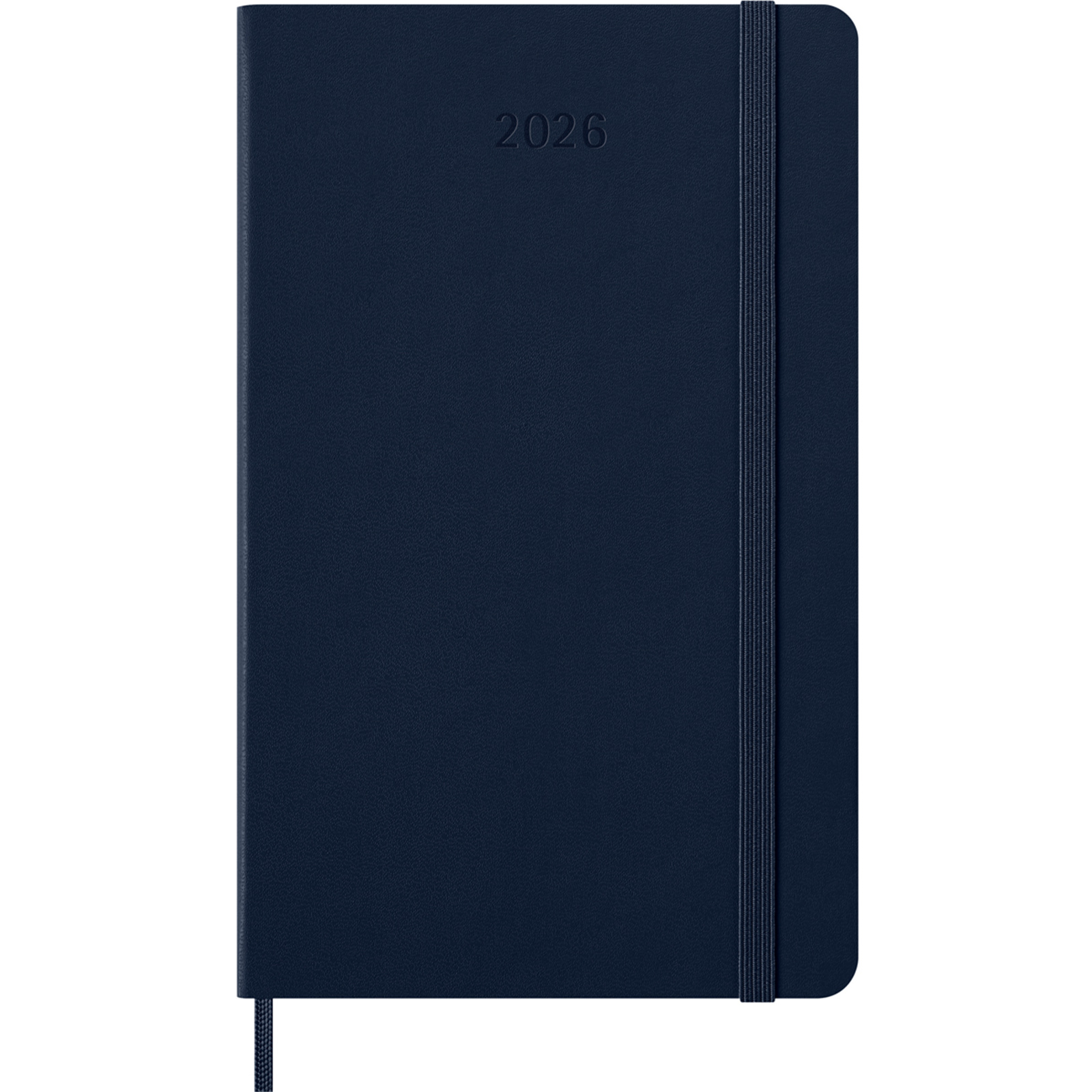 The Moleskine 12 Month Daily Hard Cover Large Diary for 2026 combines classic style with practical features for everyday use. Characterized by its robust hard cover, this diary exudes professionalism and durability. Its design is enhanced by rounded corners, an elastic closure for secure storage, and a matching ribbon bookmark that adds a touch of sophistication while keeping your place within the planner.
