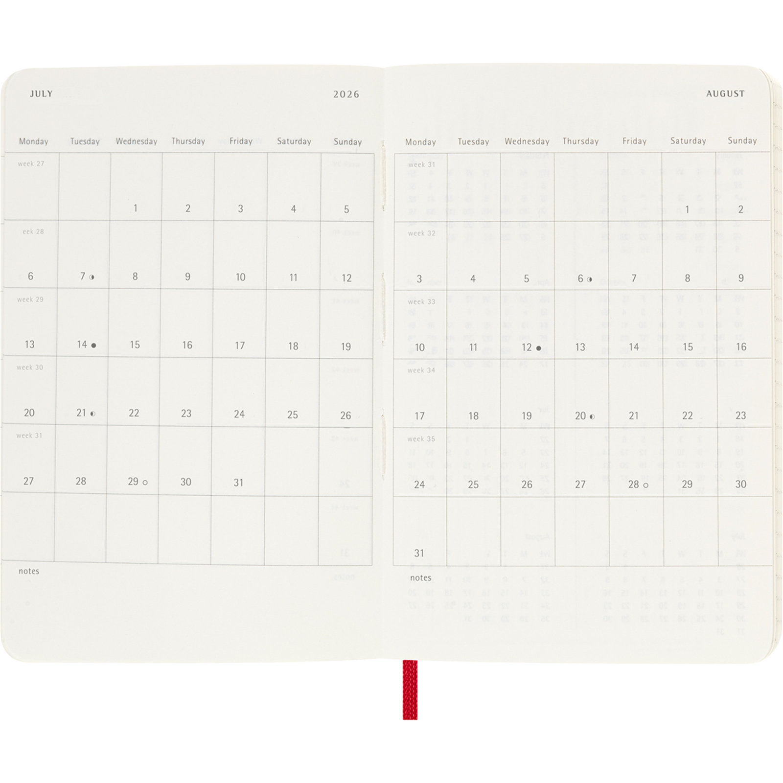 The Moleskine 12 Month Weekly + Notes Soft Cover Pocket Diary is designed for those who value order and efficiency in their daily lives. Spanning from January to December 2026, this diary ensures users never miss an important date or appointment. Its elegant soft cover is debossed with the year for quick recognition and a polished look, making it both practical and stylish to carry throughout the year.
