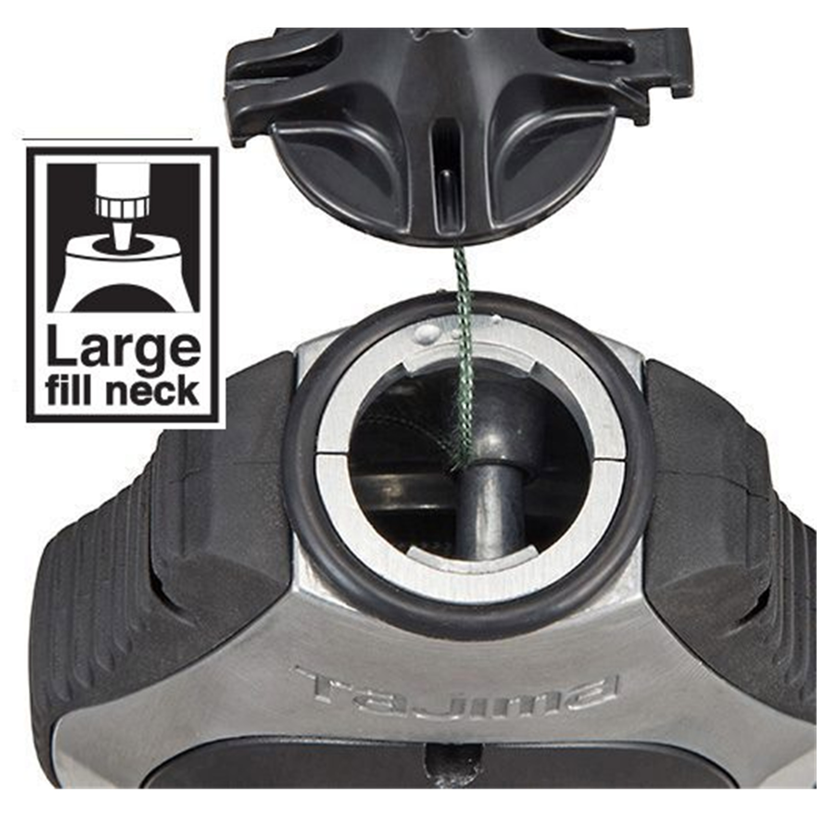 - Large chalk refill neck makes loading Tajima chalk line powder quick, easy, and mess free.