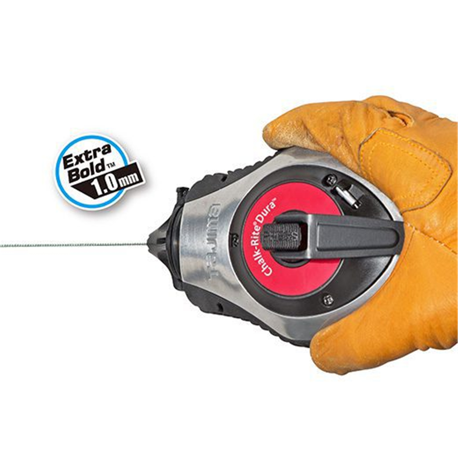 The CR401S is an extra heavy-duty chalk line featuring a die-cast aluminium case with an elastomer grip for added durability. The Extra bold 1.0mm snap line is a braided nylon line which produces clean, clear, accurate snaps for the precise layout results. Designed to work best with Tajima Micro Chalk. It has an integrated handle release that allows the chalk line to free-spool when pressed and automatically, re-engages when winding this chalk line tool.