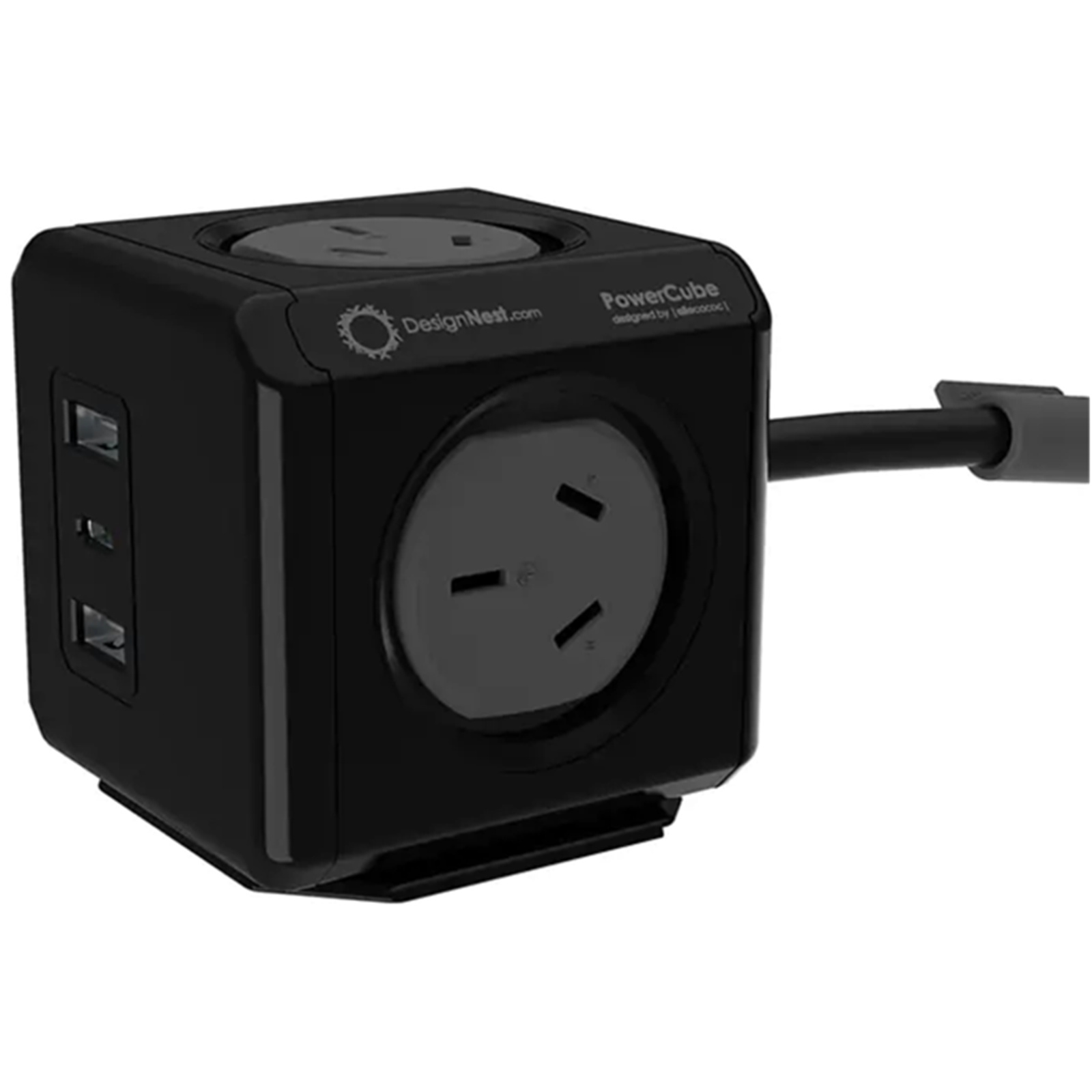 ALLOCACOC PowerCube 4 Outlet Extended USB Surge Protector with 2x USB-A & 1x USB-C - 1.5m - Black PD 20W Faster Charging - AU