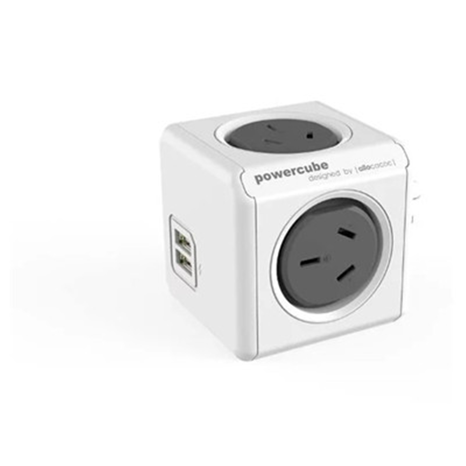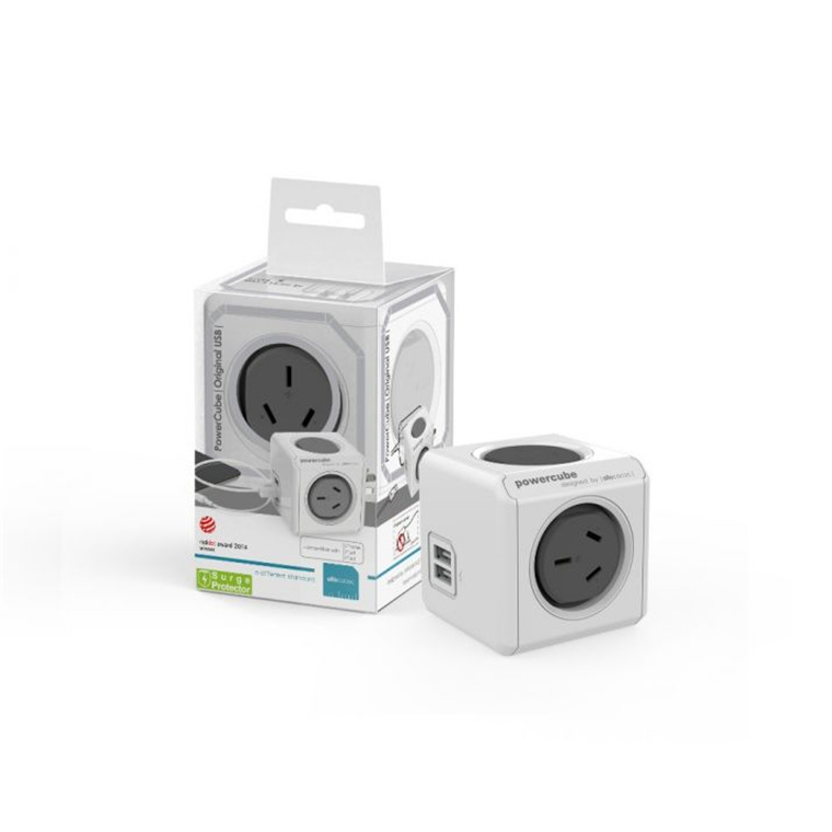 ALLOCACOC PowerCube 2 Outlet Original USB Surge Protector with 2x USB Ports - Grey