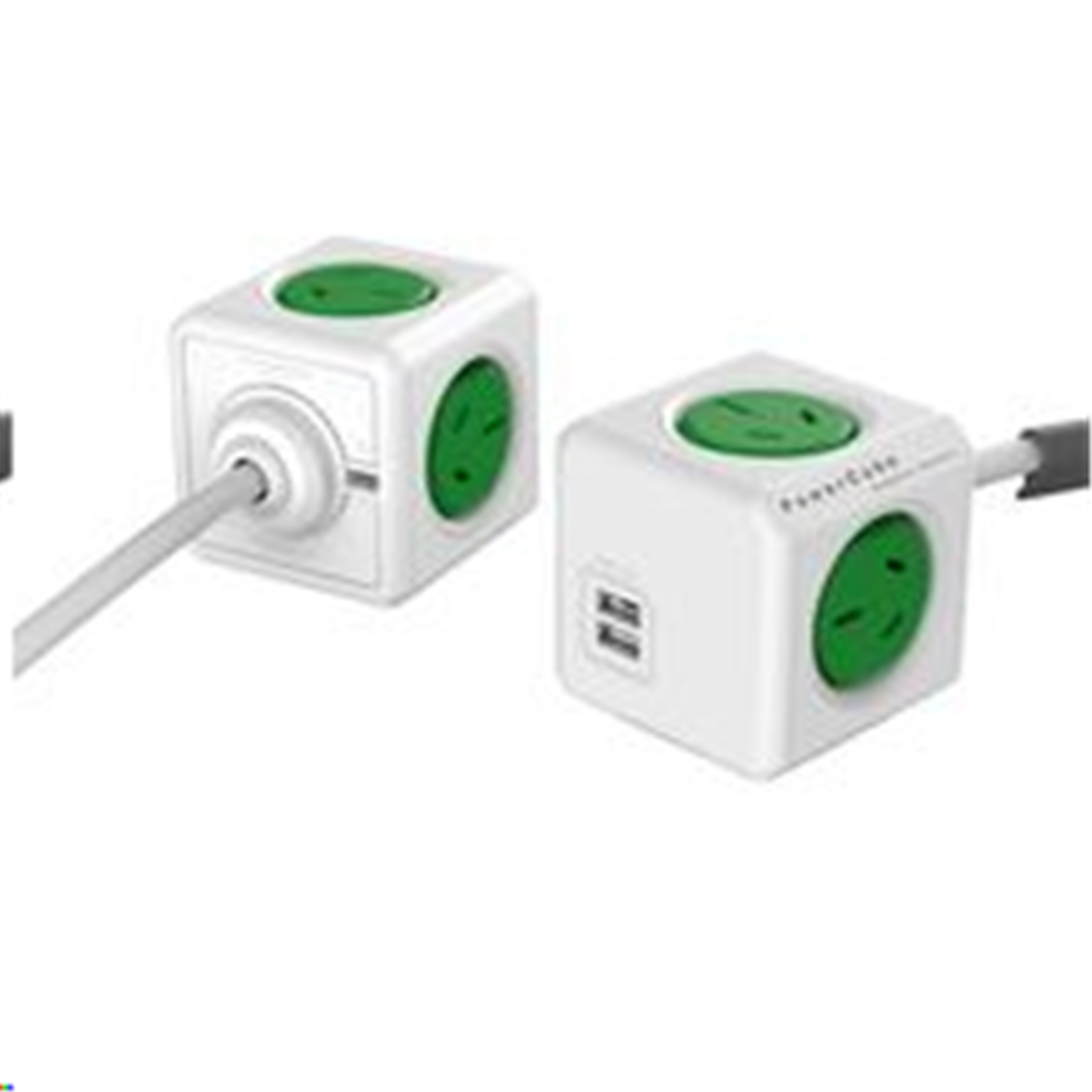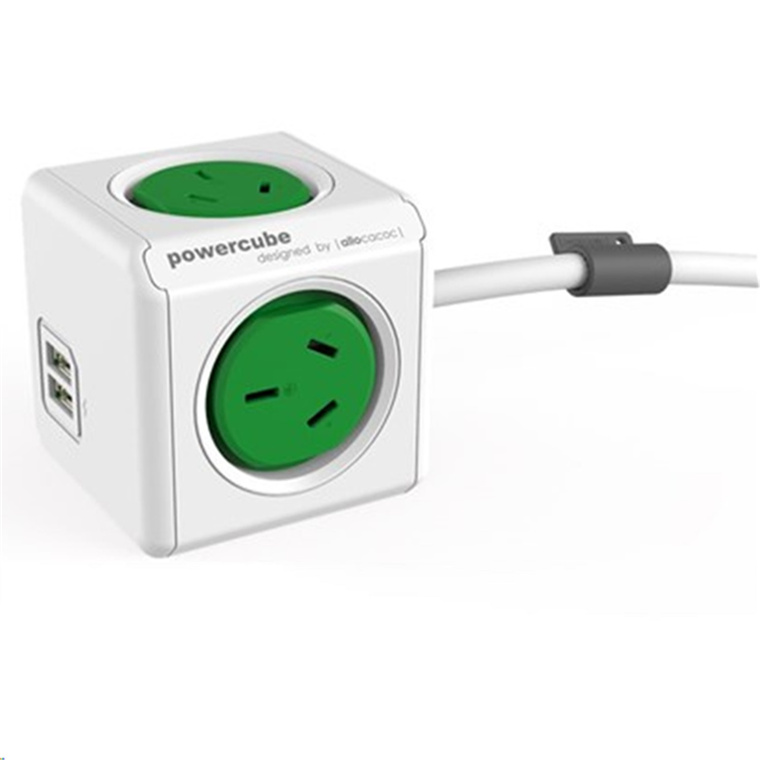 ALLOCACOC PowerCube 4 Outlet Extended USB Surge Protector with 2x USB 2.1A 10W - Green Stackable Mountable Modern Reinvention Power