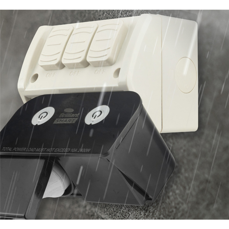 IP44 Rating - Plug into any 220V-240V AC 50Hz - Weather Resistant Out Power Outlet to Control the Connected Devices Manually or Through the BrilliantSmart App