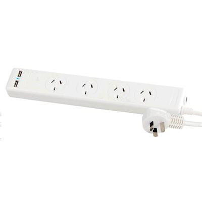 4 Way Powerboard with 2 x USB Outlets, Surge, Overload Protection & Spaced Sockets