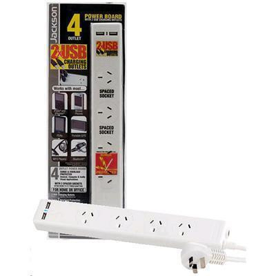 Jackson PT2929SUSB 4 way Protected Power Board 2 ports are double spaced. 2 x USB Outlets, 1m power cord