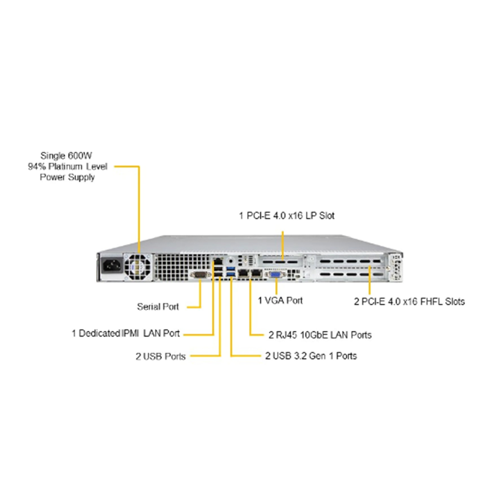 - 2 PCI-E 4.0 x16 (FHFL) slots, 1 PCI-E 4.0 x16 (LP) slot