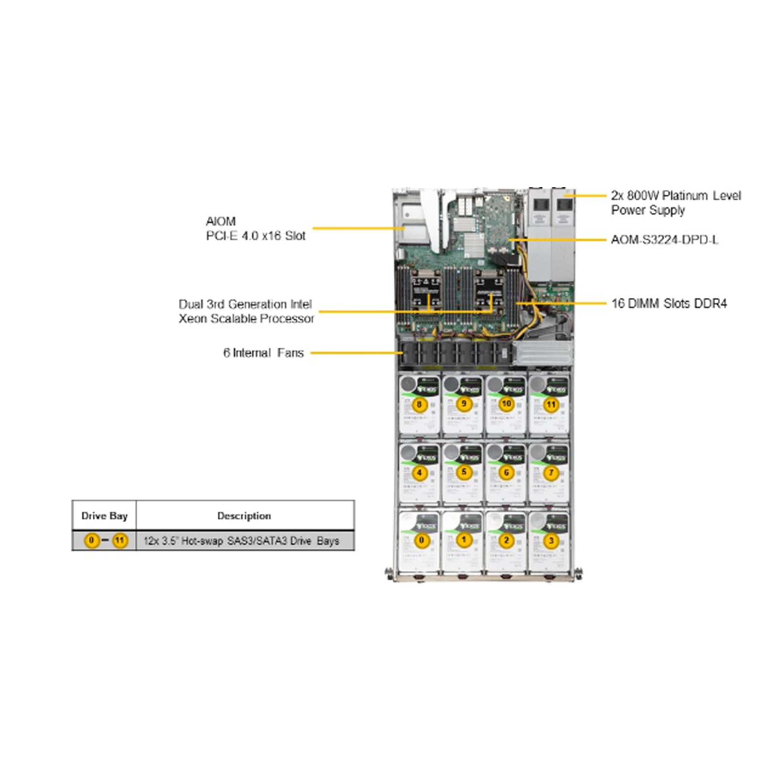 - 12x 3.5" hot-swap SAS/SATA, 4x hot-swap EDSFF Short Bays, 2x 2.5" 7mm NVMe/Hot-Swap SATA drive bays