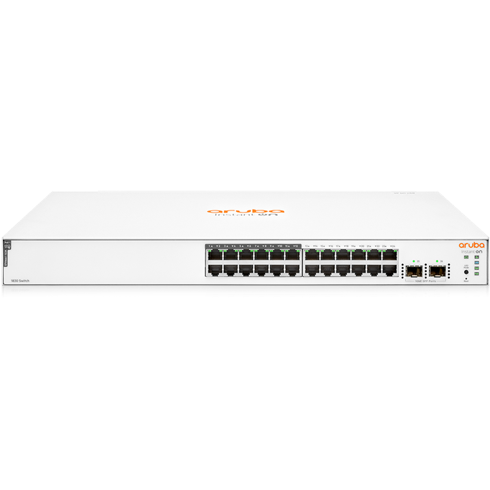 The Aruba Instant On 1830 JL813A 24-Port Gigabit PoE+ Compliant Managed Network Switch helps to quickly grow your small business's network capacity to keep up with the growing list of power over Ethernet devices such as IP security cameras, access points, and VoIP phones. This entry-level managed rackmount switch includes 24 Gigabit Ethernet ports, 12 of which are PoE+ compliant with a 195W power budget. Two Gigabit SFP ports are available for fiber connections. The JL813A also supports a host of Layer 2 features without any additional licensing fees. Use the Aruba Instant On mobile app, cloud-based web portal, or local web interface to quickly configure, manage, and monitor the Aruba Instant On 1830 network switch.