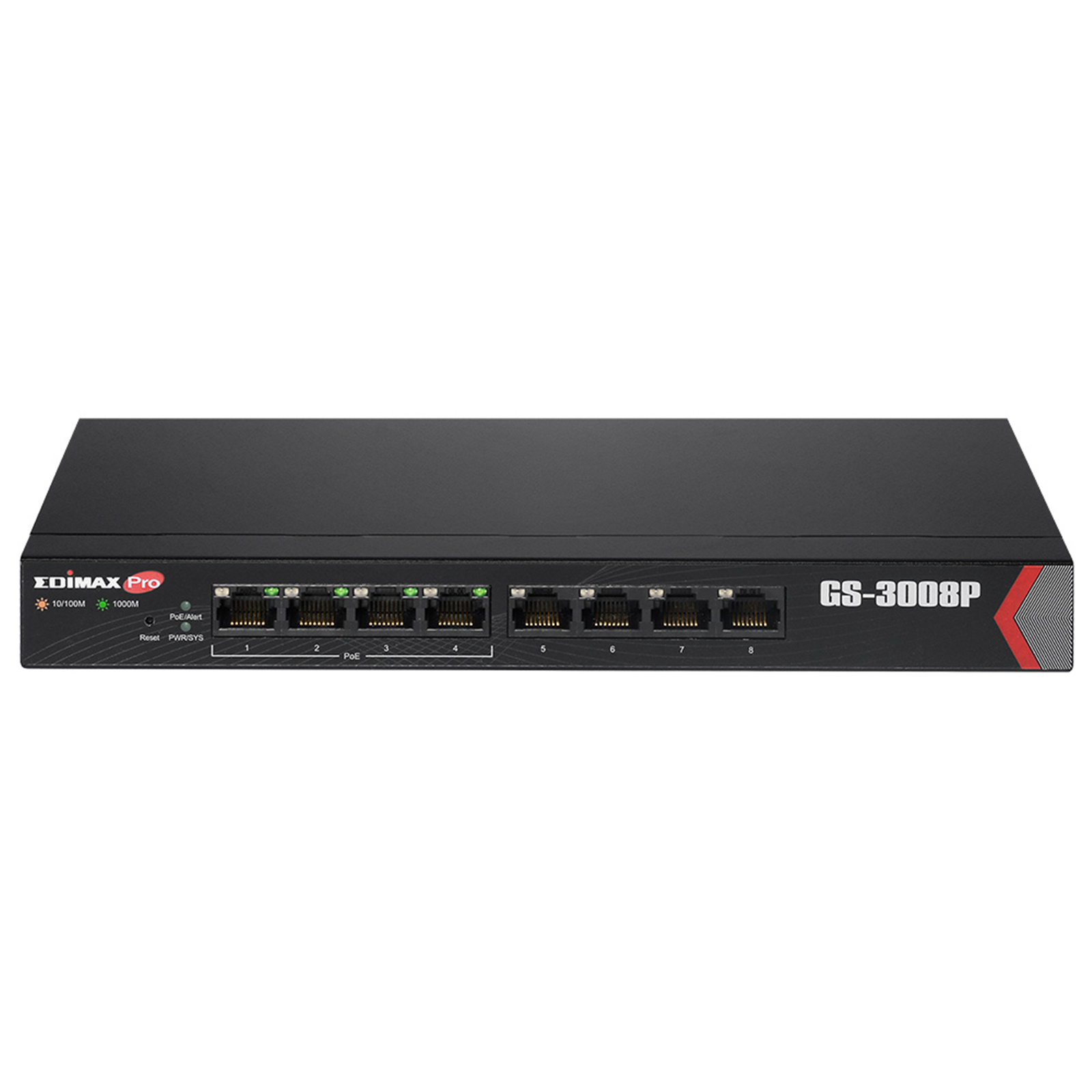 The Edimax Pro GS-3008P is a long range web-smart switch with 4 Gigabit PoE+ ports. Designed for small office and home office network environments, its desktop form-factor allows for integration in the most widely used SMB offices. With smart web management, PoE (Power over Ethernet) ports can be manually setup to extend PoE power delivery distance to up to 200 meters while also supporting smart control for VLAN (Virtual LAN), QoS (Quality of Service) and IGMP (Internet Group Management Protocol) snooping v1/v2 & v3. The PoE also features auto detection and power backfeed protection to efficiently provide power and, at the same time, avoid damaging the PoE ports. The Edimax GS-3008P is a superb choice to boost your network environment's performance and efficiency.
