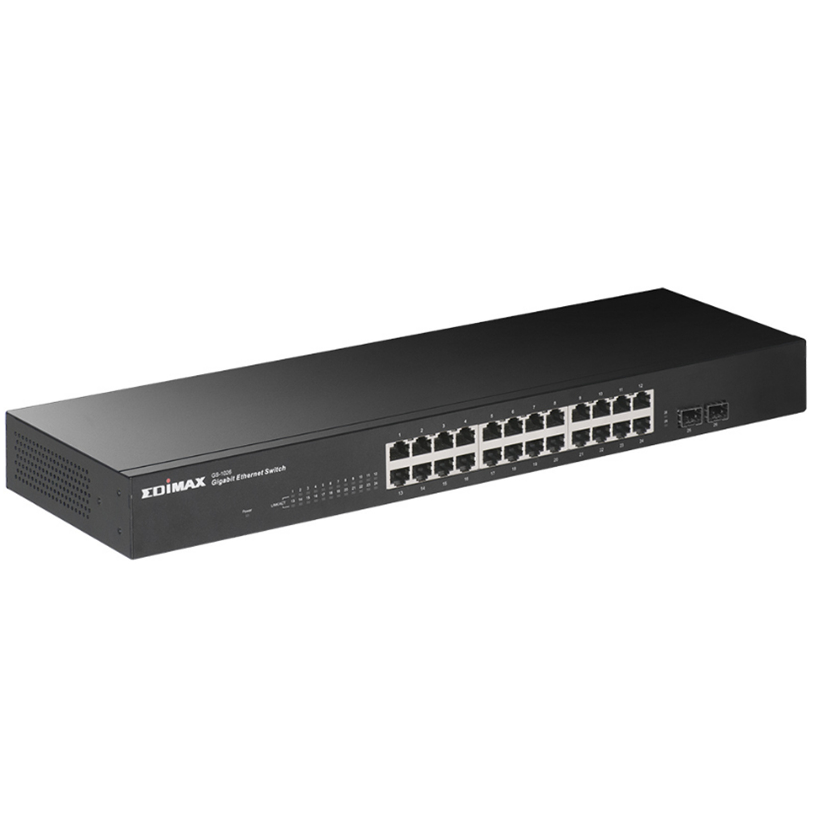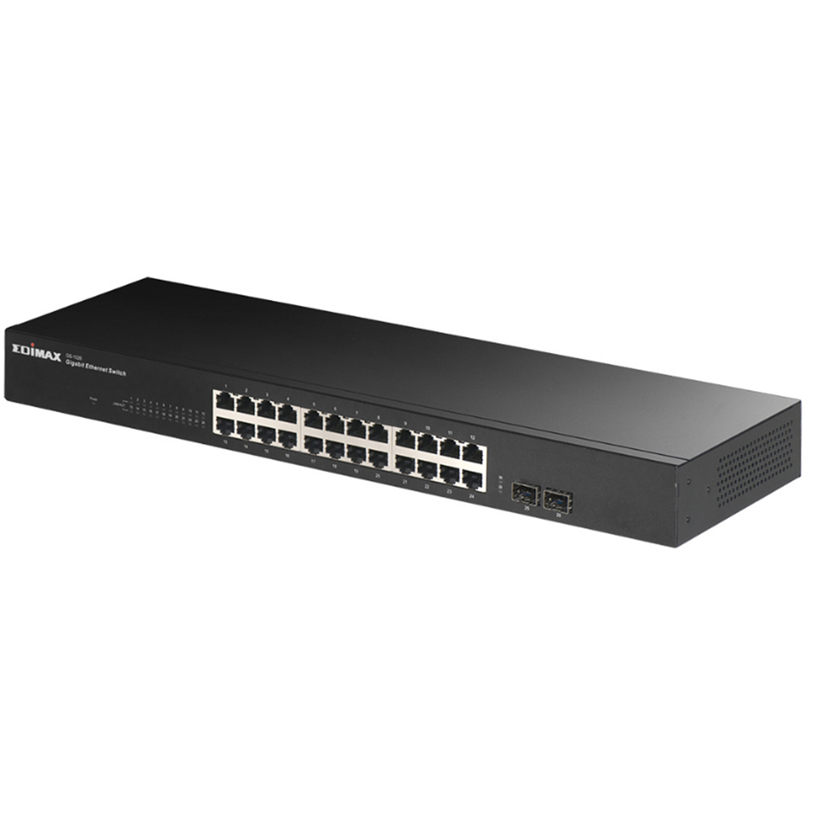 EDIMAX 24 Port Gigabit Rack-Mount Unmanaged Switch + 2 SFP Ports. High-Speed Networking and Jumbo Frames. Designed for Medium /Large Network Environments. Includes Brackets.