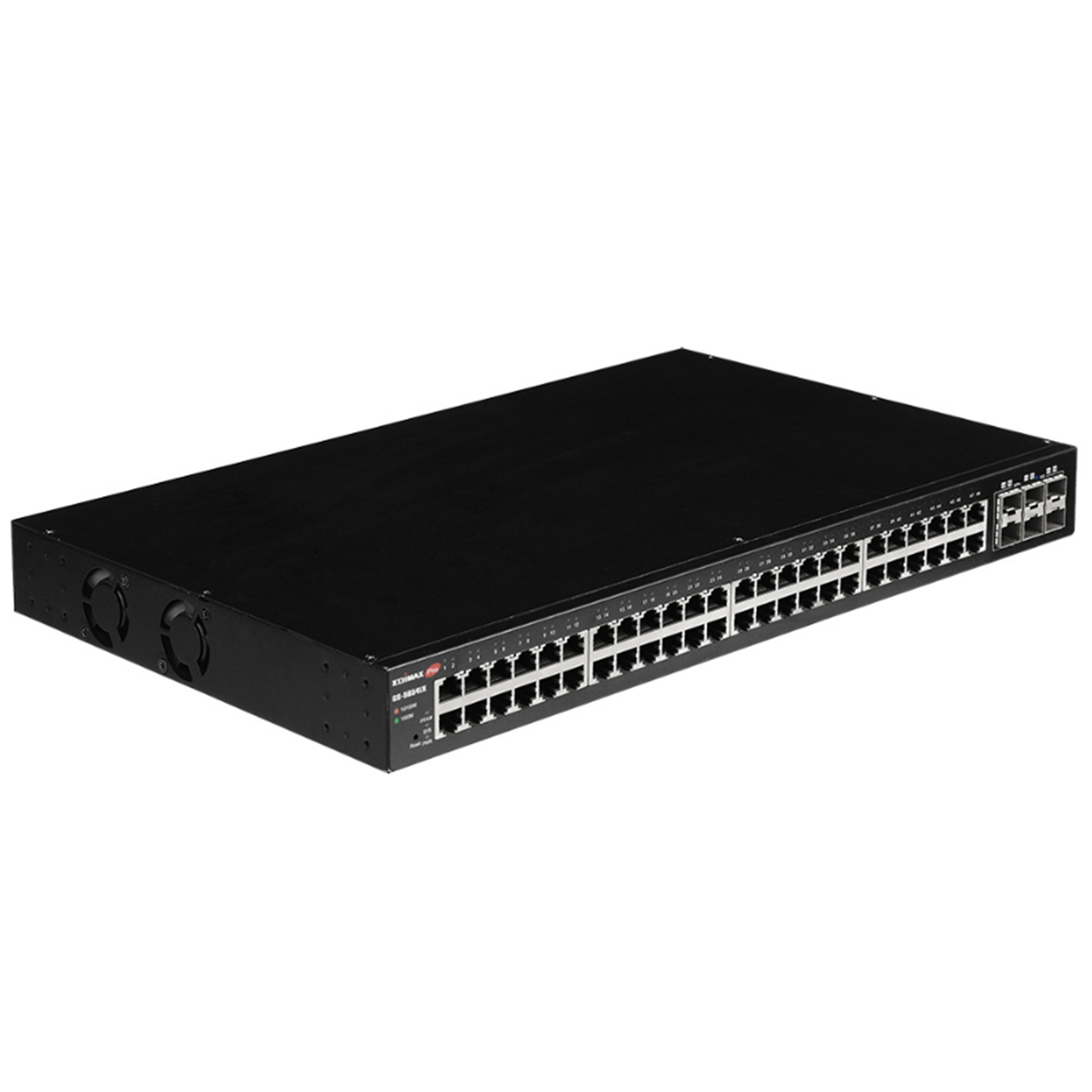 The EDIMAX Pro GS-5654LX web-smart switch comes with a web-based user interface, 48 Gigabit ports, and 6 SFP+ ports for 10 Gigabit uplinks. The Gigabit connectivity fully utilizes the power of your office networking for demanding tasks, such as data backup, video conferencing, IP surveillance, high volume transaction processing, large file transferring, and more.