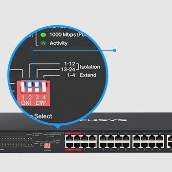 Isolation Mode easily divides traffic for ports 1-12 & 13-24 to avoid snooping/tampering and isolates broadcast storm for higher security.