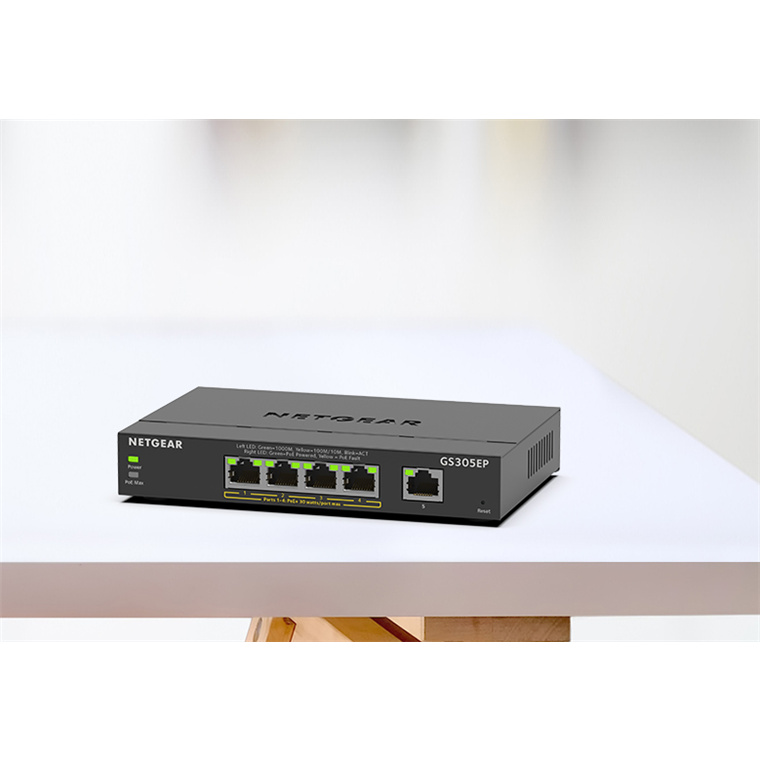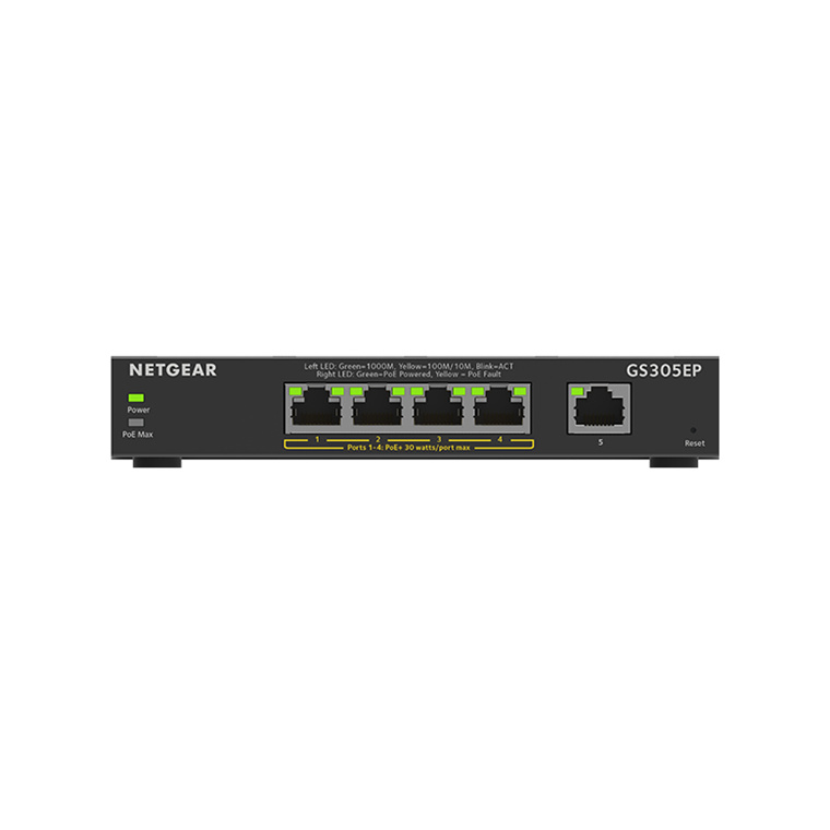 Easy to manage, fundamental network features at an affordable cost for SMBs. GS305EP offers 63W total power budget to power devices PoE devices such as VoIP phones, IP cameras, wireless access points, etc.