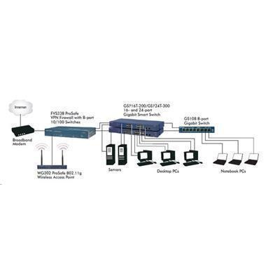 NETGEARs family of Prosafe Gigabit Smart Switches is purposely designed for SMB customers with high performance, SMB-oriented features and easy management. With 16 or 24 10/100/1000 Mbps ports, each capable of powering 2000 Mbps of data throughput in full-duplex mode per port, plus two shared SFP ports, the GS716T-200 and GS724T-300 will enable SMB networks to support Voice over IP (VoIP), streaming media, multicasting, security, and many other bandwidth-intensive applications like ERP and large file transfers.