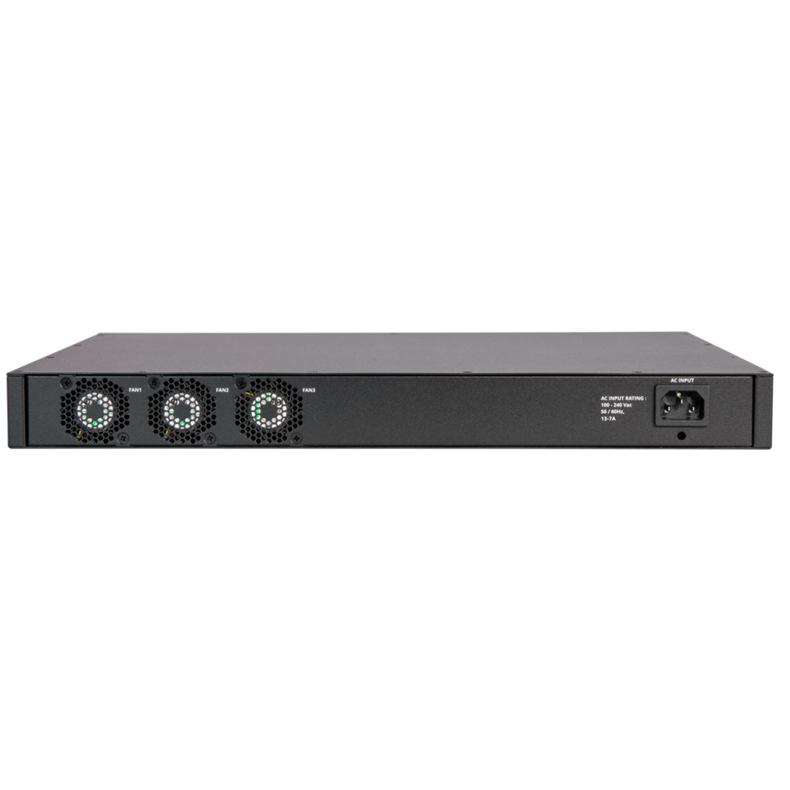 With 740 W PoE budget and 48 PoE/PoE+ ports, it powers access points, cameras, and IoT devices directly.