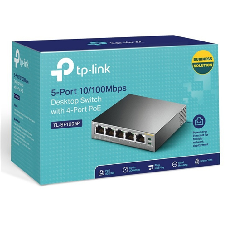 TL-SF1005P is easy to install and use. It requires no configuration and installation. With desktop design, outstanding performance and quality, the TP-Link's TL-SF1005P 5-Port 10/100Mbps Desktop Switch with 4-Port PoE is an ideal choice for expanding your home or office network.