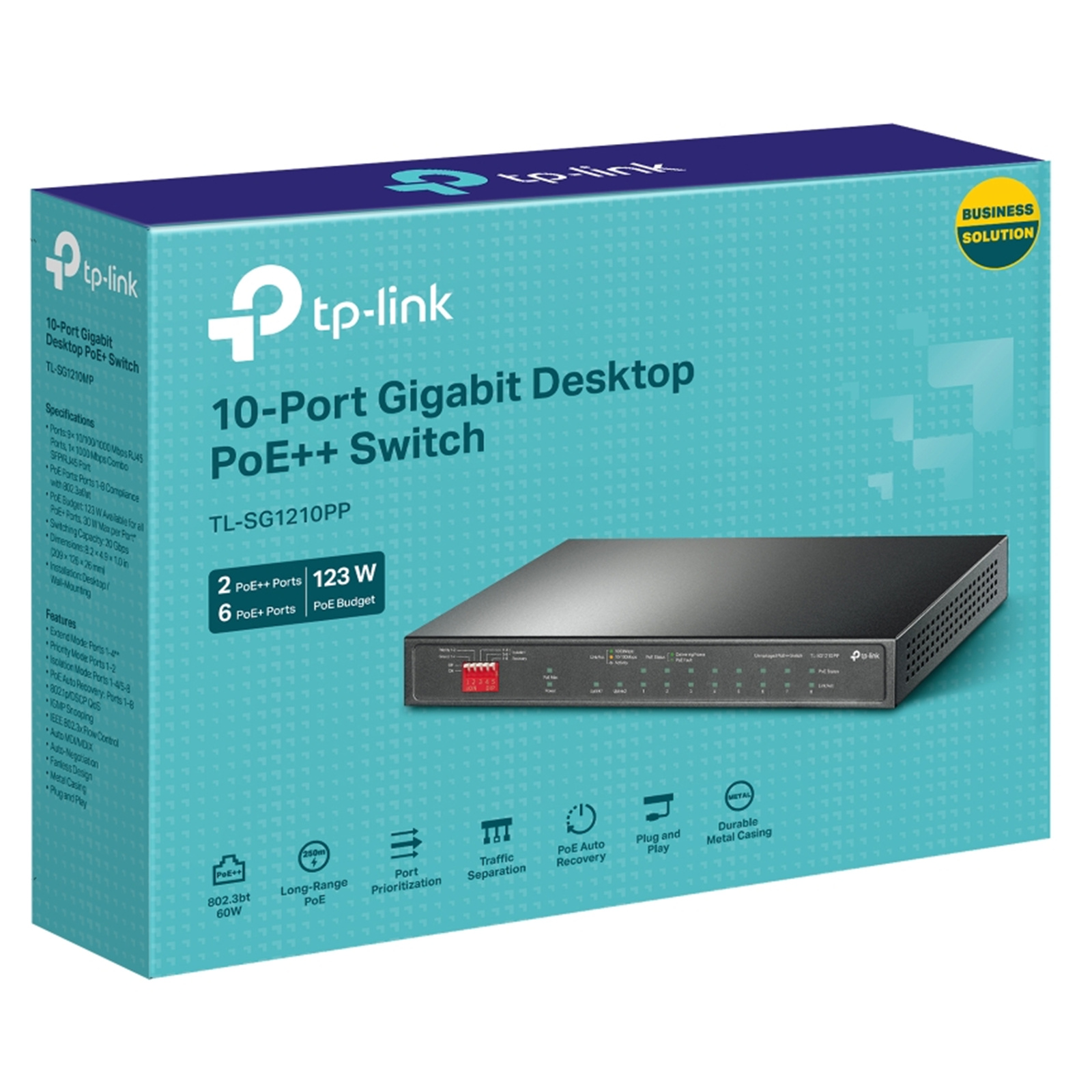 TP-Link TL-SG1210PP 10-Port Gigabit Desktop Switch with 6-Port PoE+ and 2-Port PoE++ (Max 123W)