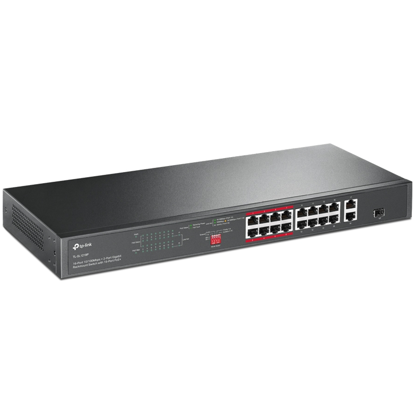 TP-Link TL-SL1218P 16-Port 10/100 Mbps + 2-Port Gigabit Rackmount Switch with 16-Port PoE+ (Max 150W)