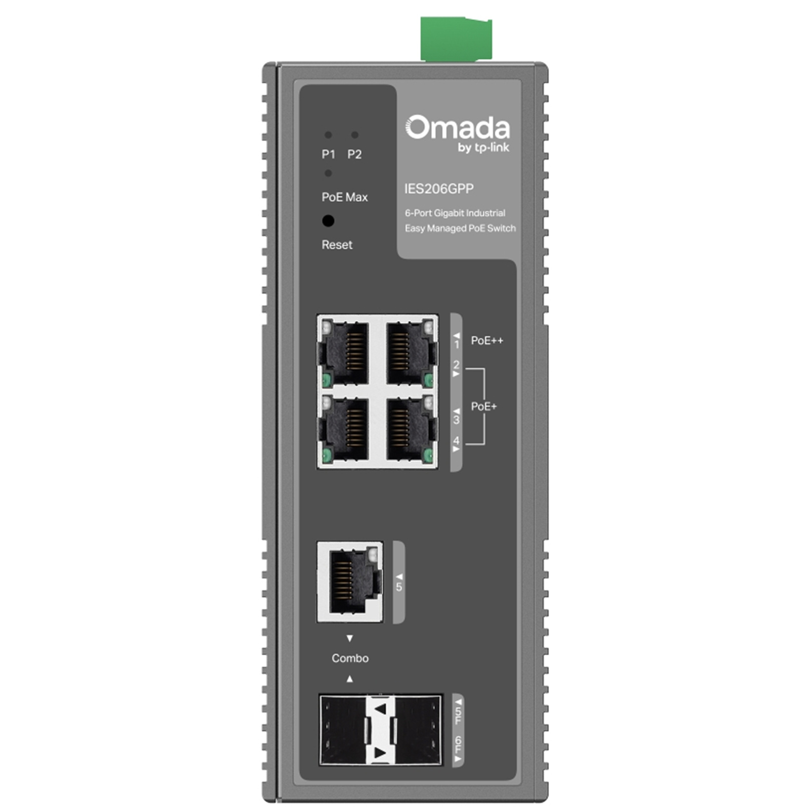 TP-Link Omada IES206GPP 6-Port Gigabit Industrial Easy Managed Switch with 3-Port PoE+ and 1-Port PoE++(120W)