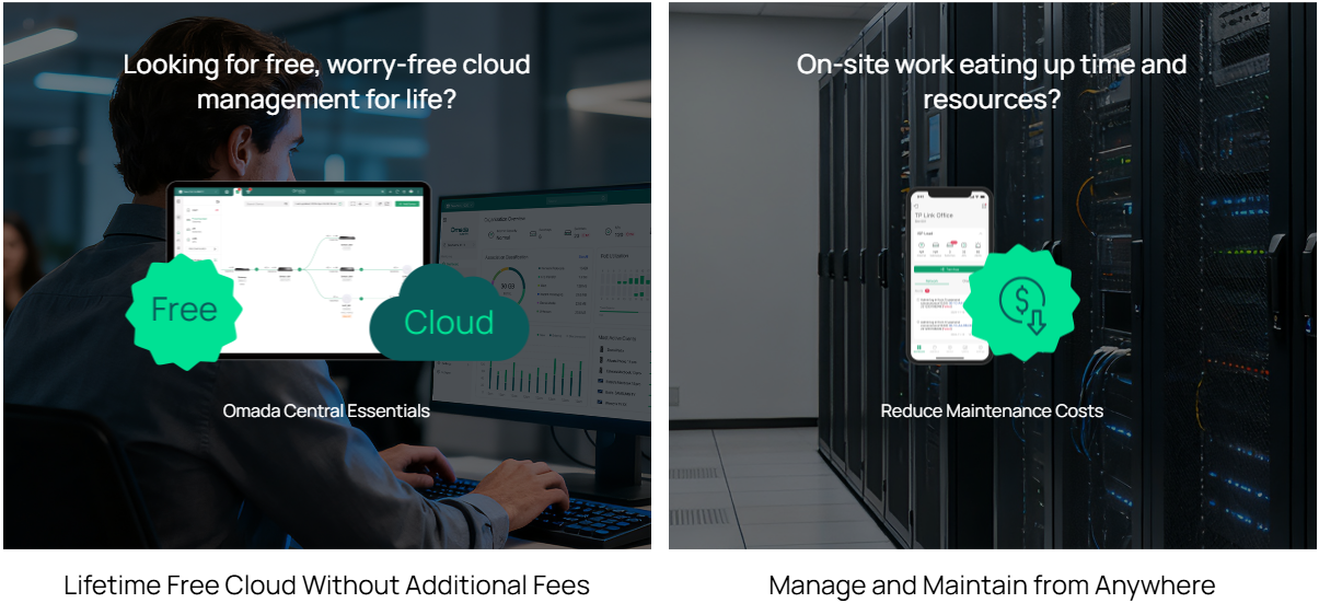 Works with Omada Central Essentials for Free and Easy Cloud Management