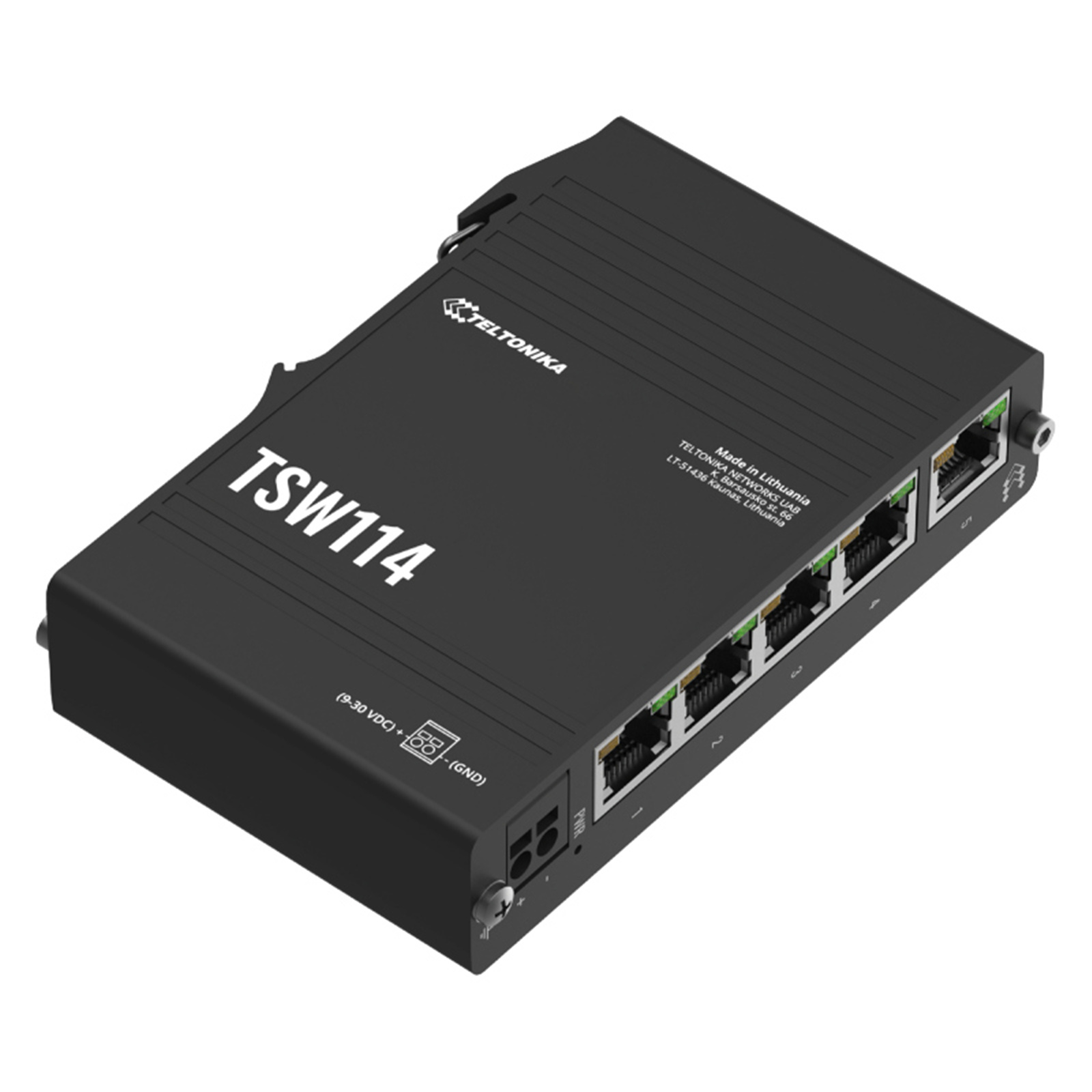 Teltonika TSW114 DIN Rail 5 Port GbE Switch with Rugged Anodized Case
