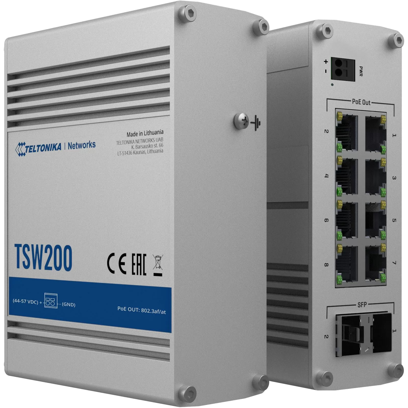 Teltonika TSW200 Unmanaged Industrial Ethernet PoE+ Switch(240W) GbE x 8 / PoE+ x 8 / SFP x 2