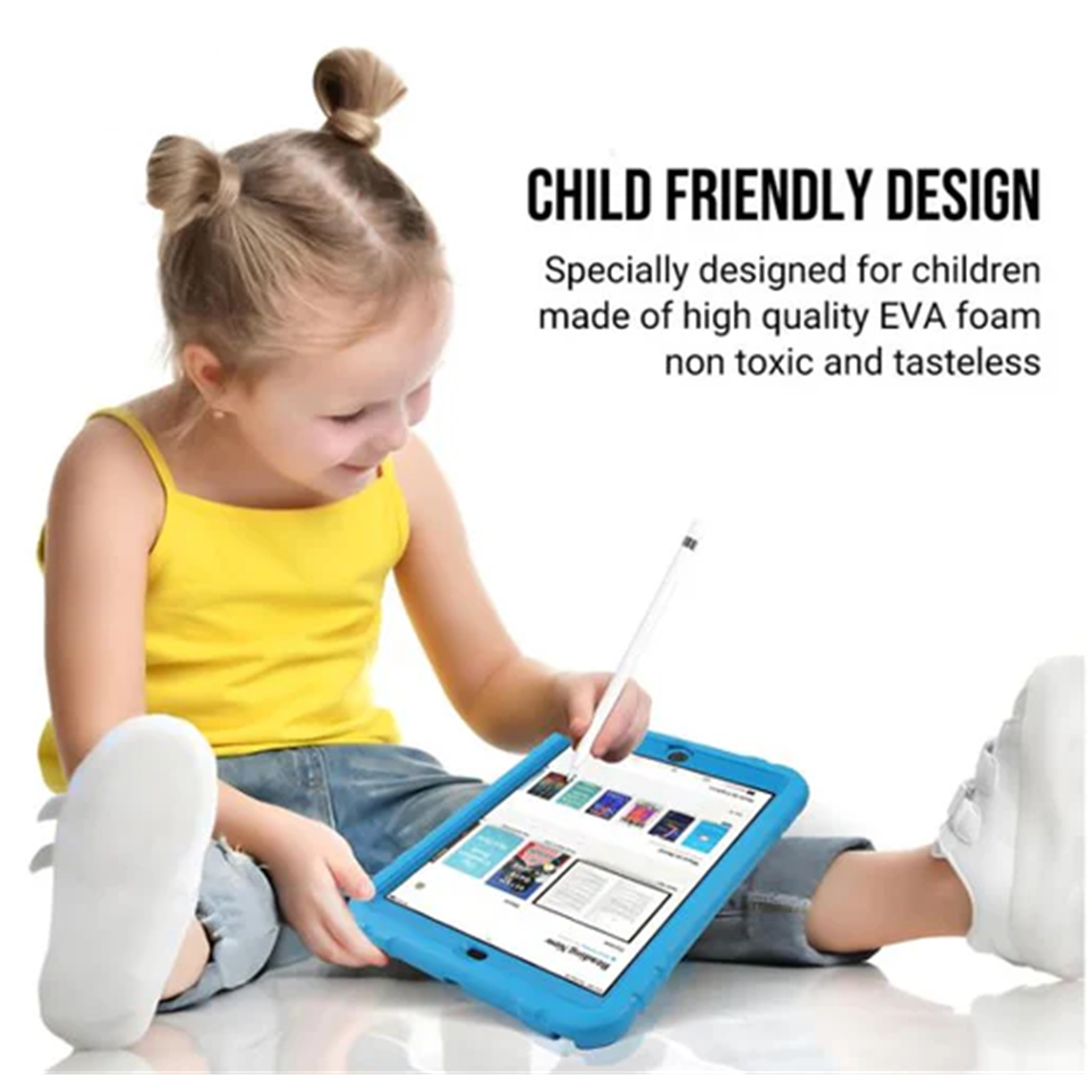 Function meets form with the versatile built-in stand that accompanies this case, designed to seamlessly adapt to their viewingneeds. Kids are able to prop up their tablet to the perfect angle, all with hands-free ease. Our case is crafted from tasteless and non-toxic EVA soft material, making it a kid-friendly choice that offers peace of mind to parents.
