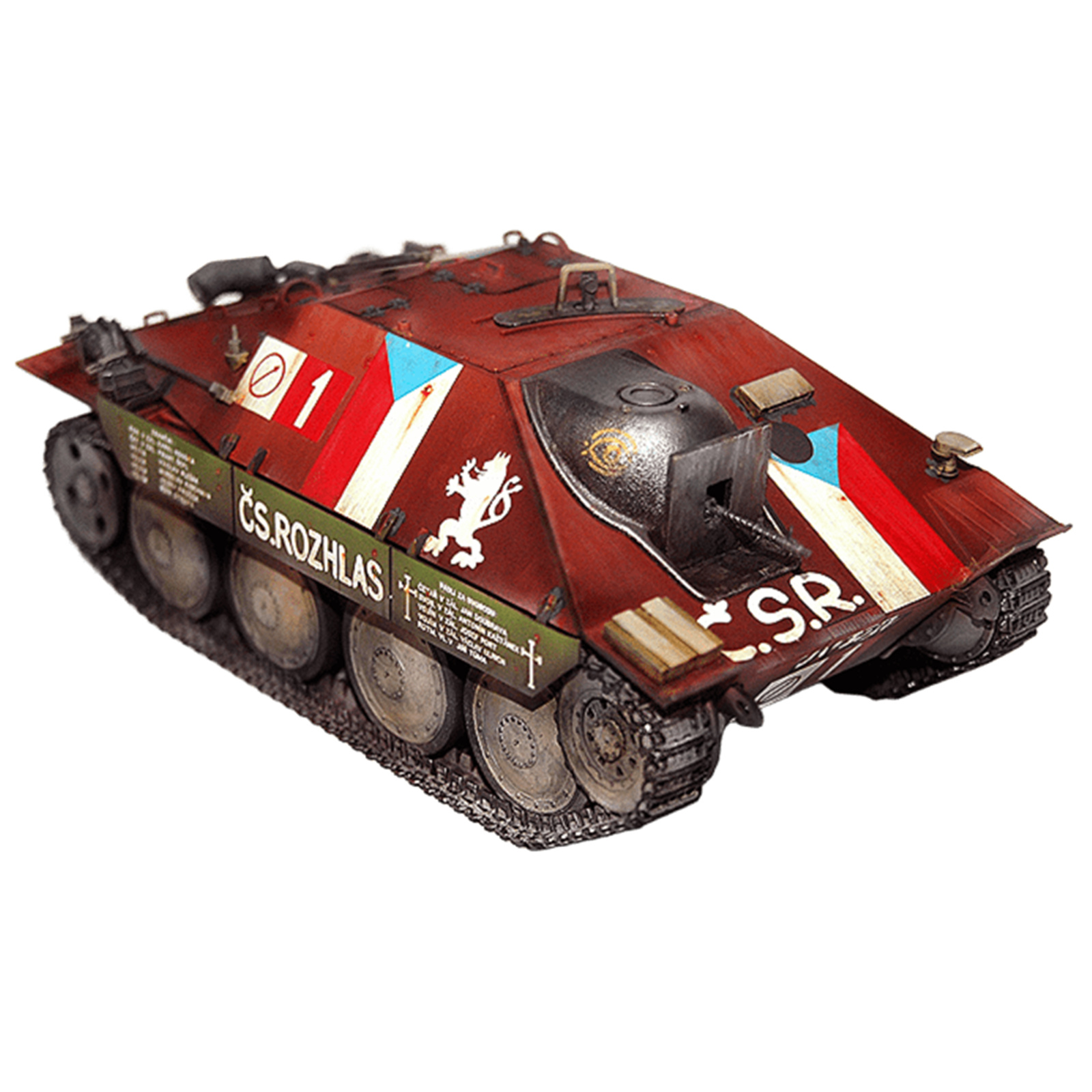 The Hetzer was produced primarily by the Škoda factory in occupied Czechoslovakia, with over 2,800 units built between 1944 and 1945. It saw action on both the Eastern and Western Fronts and was praised for its mobility, concealment, and reliability. After the war, Czechoslovakia continued to produce and operate the Hetzer under the designation ST-I, using it well into the postwar years. Its service during the Prague Uprising of 1945 makes this variant historically significant and a favorite subject for modelers and military history enthusiasts alike.