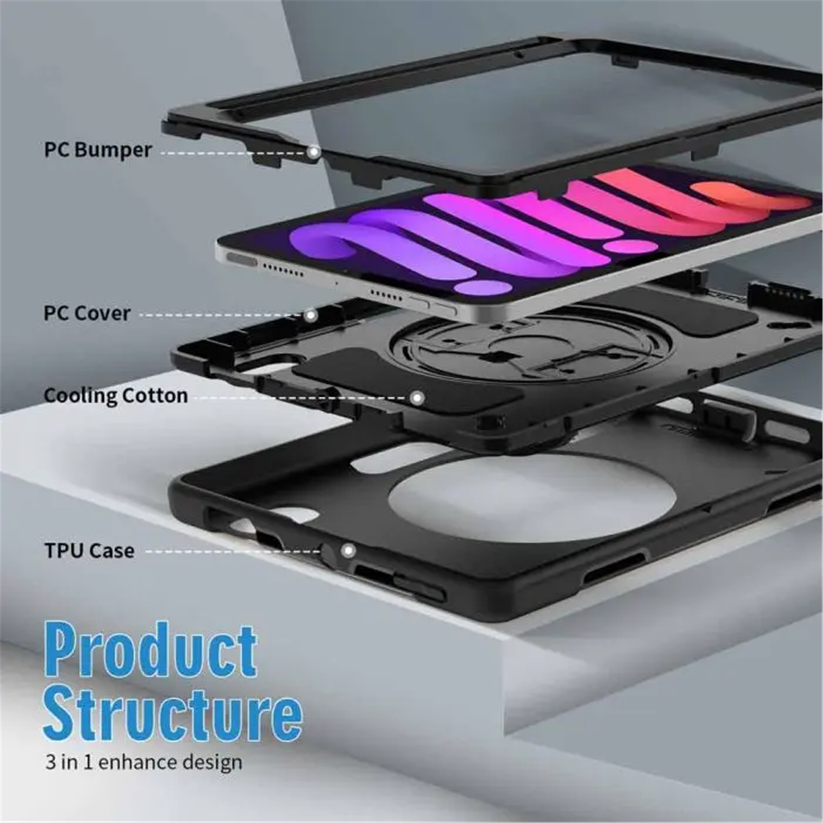 Armor-X (RIN Series) RainProof Military Grade Rugged Tablet Case With Hand Strap & Kick-Stand for iPad Mini A17 Pro and 6th Gen