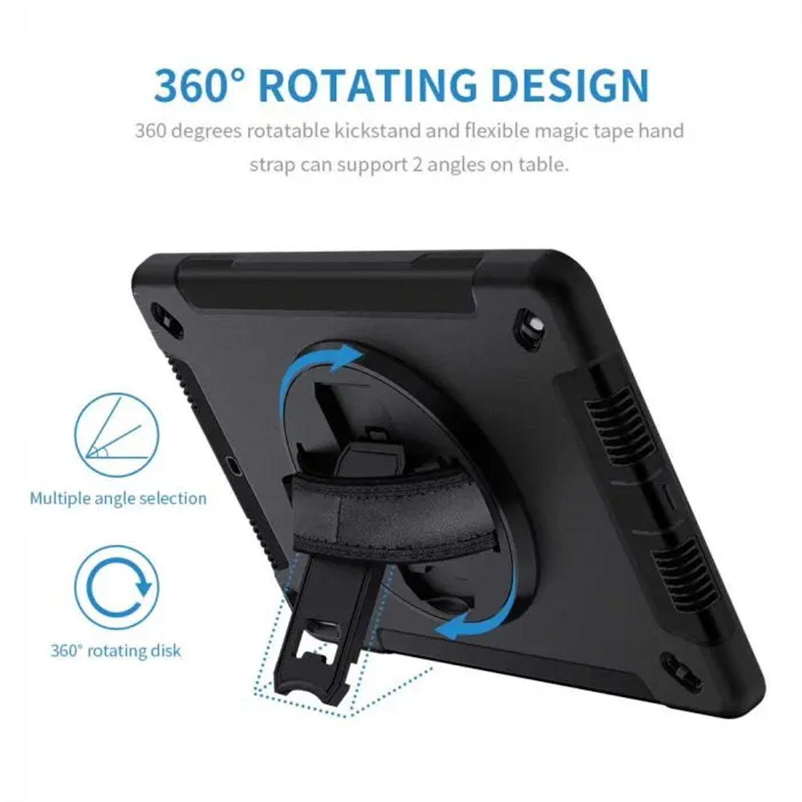 3 LAYERS HEAVY DUTY RAINPROOF MILITARY GRADE RUGGED CASE FOR TABLET WITH HAND STRAP AND KICK-STAND