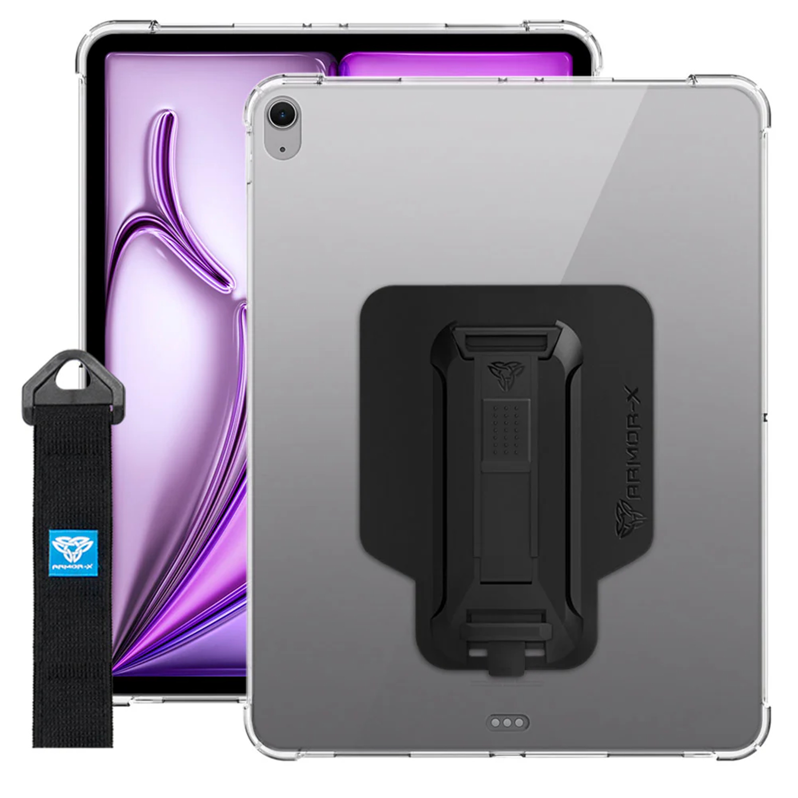ZXS-iPad-A4CL | iPad Air 11 ( M2 ) | 4 corner protection case w/ hand strap kick stand & X-mount